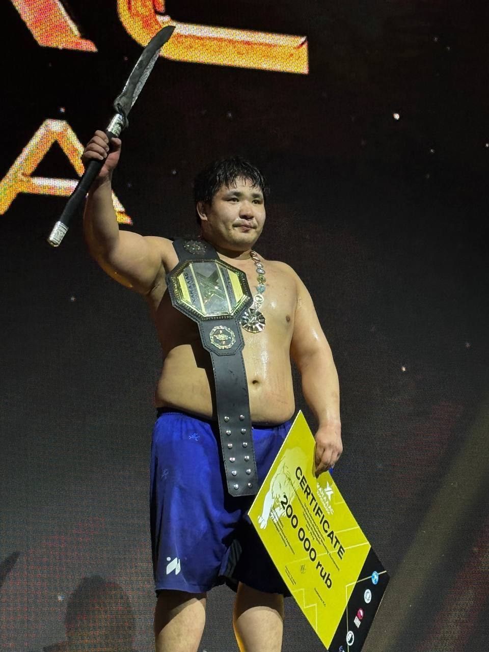 Якутский борец Никита Хабаров, прозванный «Момской скалой», выиграл в финале абсолютного первенства в весе свыше 75 кг у тувинца Айдын Монгуша. Ему вручили пояс чемпиона, медаль с бриллиантом, батыйа и 200 тысяч рублей.
