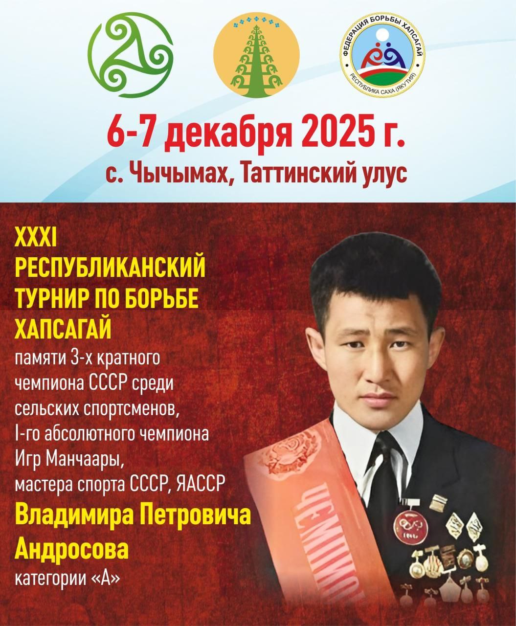 6–7 декабря в селе Чычымах Таттинского улуса пройдёт XXI республиканский турнир по хапсагаю памяти трёхкратного чемпиона СССР среди сельских спортсменов, первого абсолютного чемпиона Игр Манчаары Владимира Петровича Андросова.