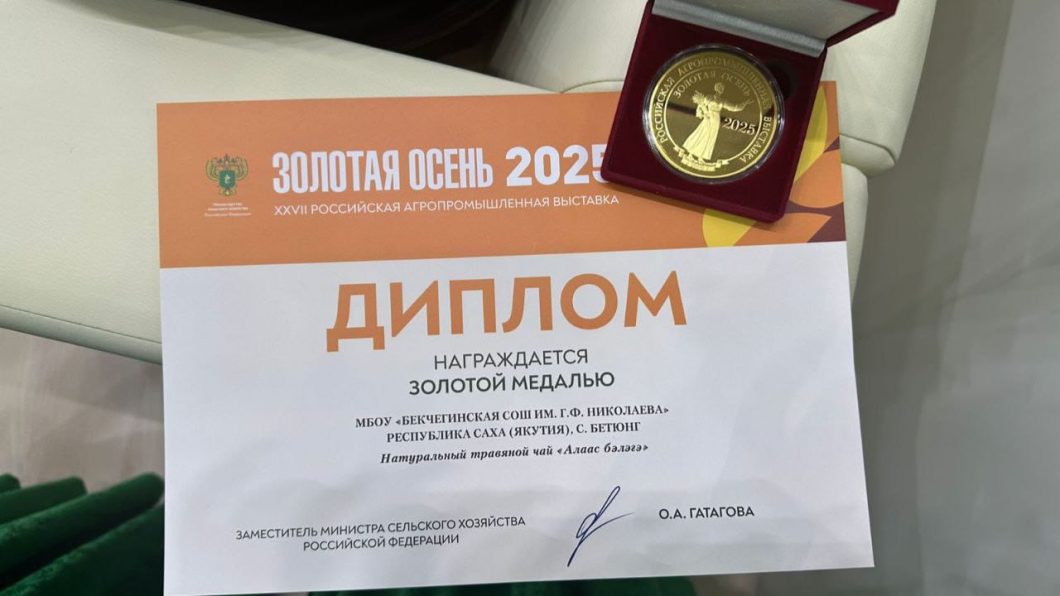 МБОУ «Бекчегинская СОШ» им. Г.Ф. Николаева из Вилюйского улуса завоевала две золотые медали за свежезамороженный борщ и ферментированный Иван-чай «Алаас бэлэҕэ» с листьями черной смородины и ягодами шиповника. Эта победа подтверждает конкурентоспособность проектов якутских школьников на федеральном уровне и добавляет уверенности всем юным аграриям.