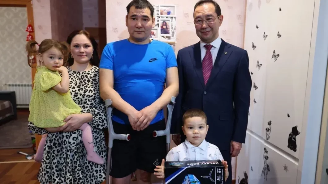 Со стороны Администрации Кобяйского района семье оказывается всесторонняя поддержка. В 2022 году была оказана материальная помощь, в 2023 году — волонтёрская помощь в ремонте комнаты в квартире, в 2024 году выделено направление отцу в Республиканский кардиологический центр, а семье оказана материальная помощь для выезда супруги с детьми на обследование в Якутск.