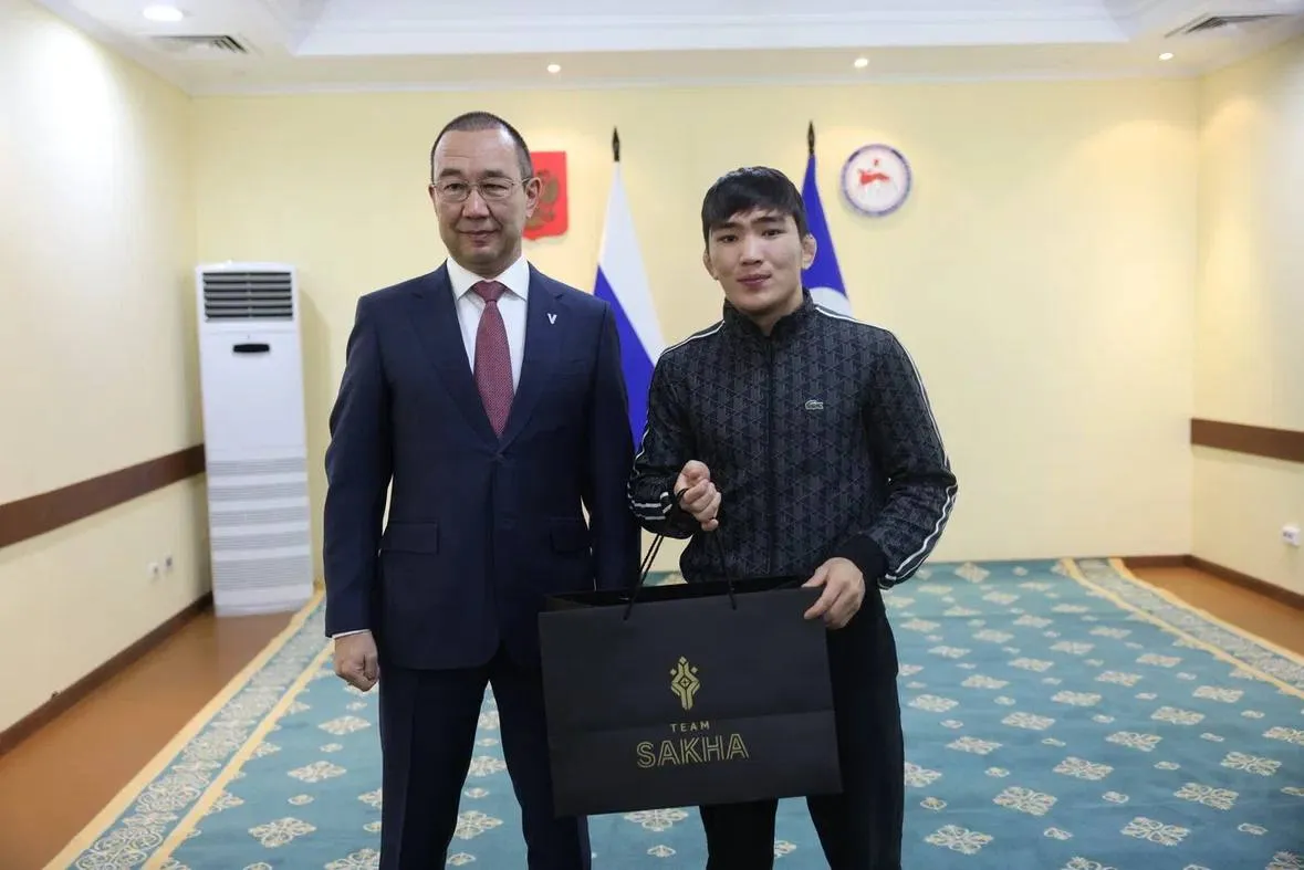 Айсен Николаев перед турниром Дмитрия Коркина вручил экипировку борцам сборной Якутии