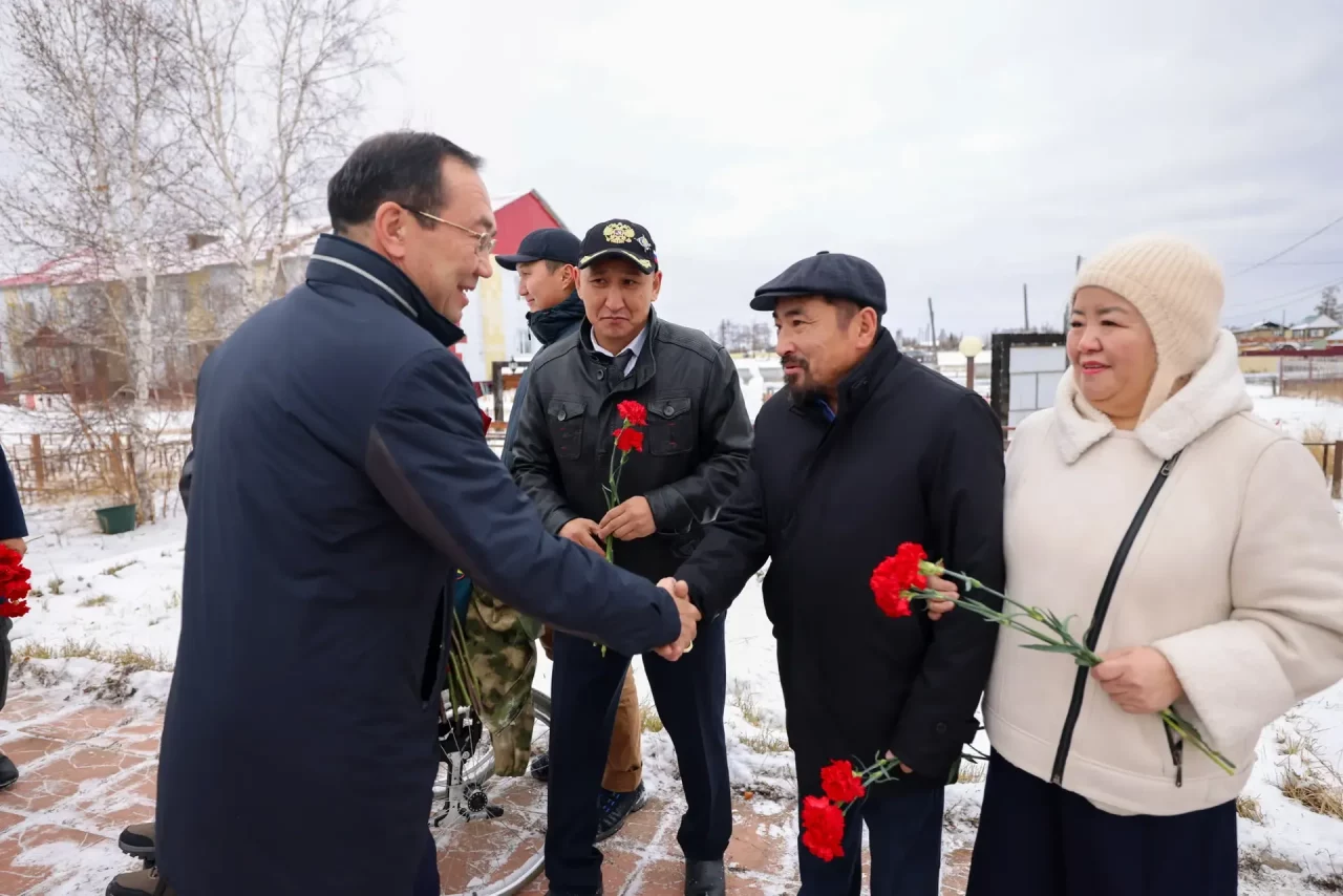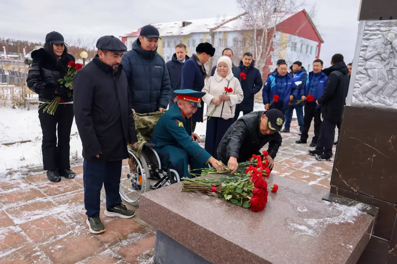 В возложении цветов также приняли участие Глава Мегино-Кангаласского улуса Дмитрий Тихонов, народный депутат республики, генеральный директор компании «Сахатранснефтегаз» Алексей Колодезников, народный депутат, гендиректор НВК «Саха» Олег Марков, Герои России Филипп Евсеев и Алексей Петров, а также общественники, активисты.