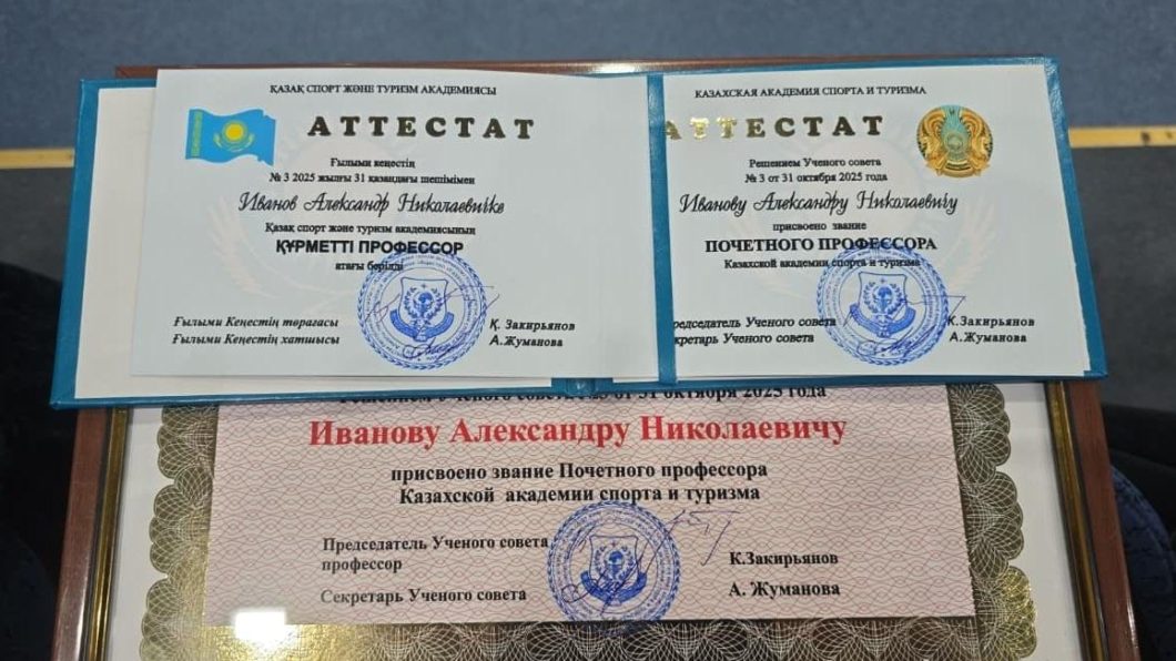 Серебряный призёр Олимпийских игр 1976 года в Монреале Александр Иванов удостоен звания почётного профессора Казахской академии спорта и туризма. Решение об этом принято учёным советом академии 31 октября
