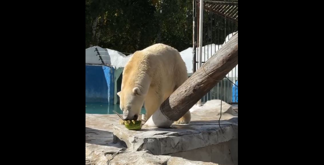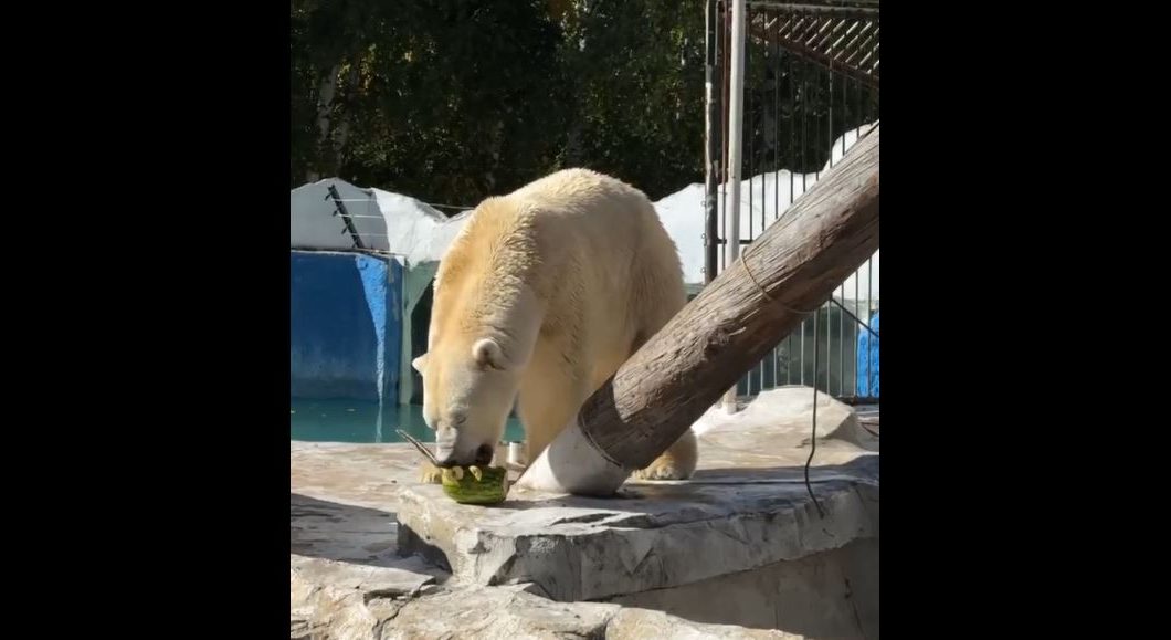 Белый медведь Алмаз предпочел рыбе арбуз и тыкву