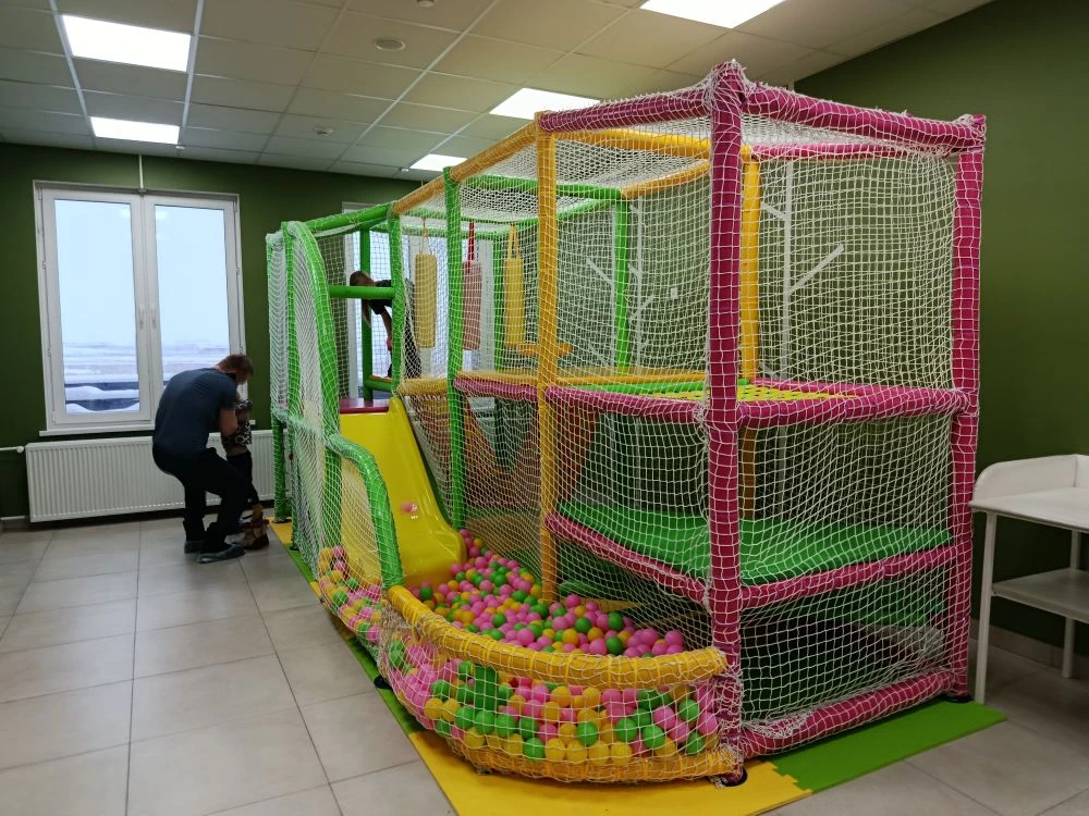 Удивительно, но в детском отделении не слышен плач детей. Ожидая своего времени приема, дети с удовольствием играют на небольшой детской площадке, где можно скатиться с горки или поиграть в кубики. До 20 человек в смену принимают кабинеты лучевой диагностики, там установлены современные аппараты КТ и МРТ.