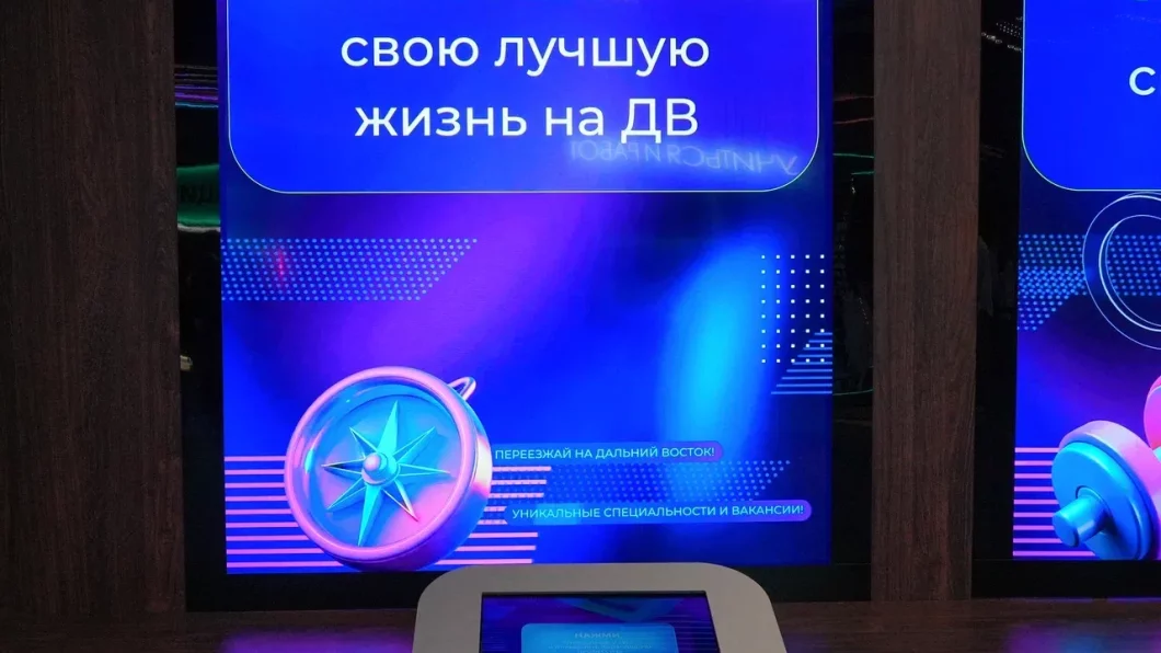 В интерактивной зоне «Карьерные лестницы» можно узнать о вариантах построения карьеры в востребованных профессиональных областях на Дальнем Востоке. Зона «Туризм» погружает посетителей в атмосферу невероятной дальневосточной природы и рассказывает о туристической привлекательности макрорегиона: посетитель экспозиции может пройти тест и узнать, какой маршрут для путешествия будет для него наиболее подходящим. Зона «ДВ – регион патриотов» знакомит с дальневосточниками-героями СВО и Центром военно-патриотического воспитания «ВОИН».