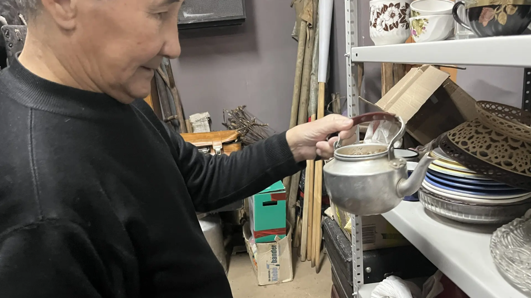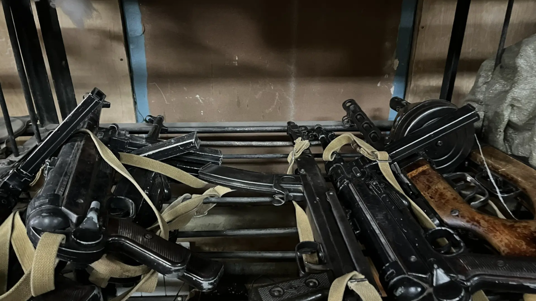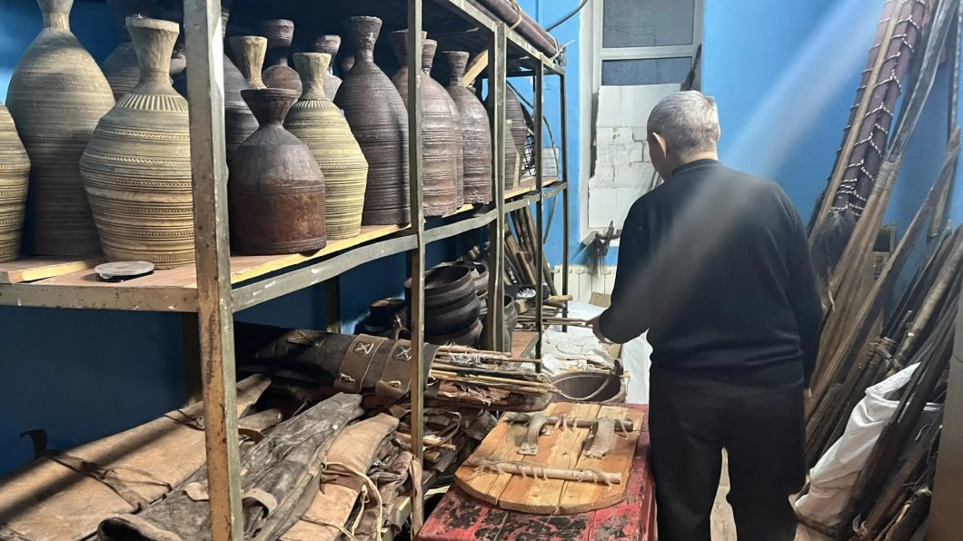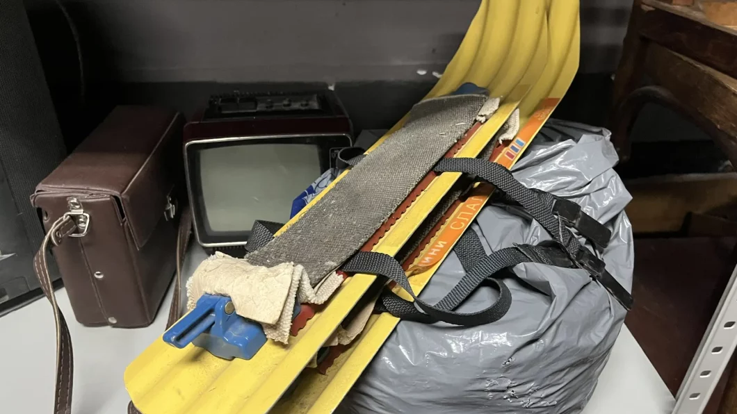 Мой собеседник провожает меня, как на экскурсии, по узкому коридору в одну из комнат. Здесь вдоль стен расположились полки и шкафы. На них лежит бесчисленное множество самых разных предметов: автоматы, каски, солдатские поясные сумки, ружья времен Великой Отечественной войны, рядышком – шлемы, латы, торбаза, седла, лыжи XVI–XVII веков, дальше в глубине – советские лампы, радиоприемники, чемоданы, счеты, самовары и тут же – видеокамеры из 90-х, солнцезащитные очки, бывшие когда-то в моде сумочки и кожаные ремни…