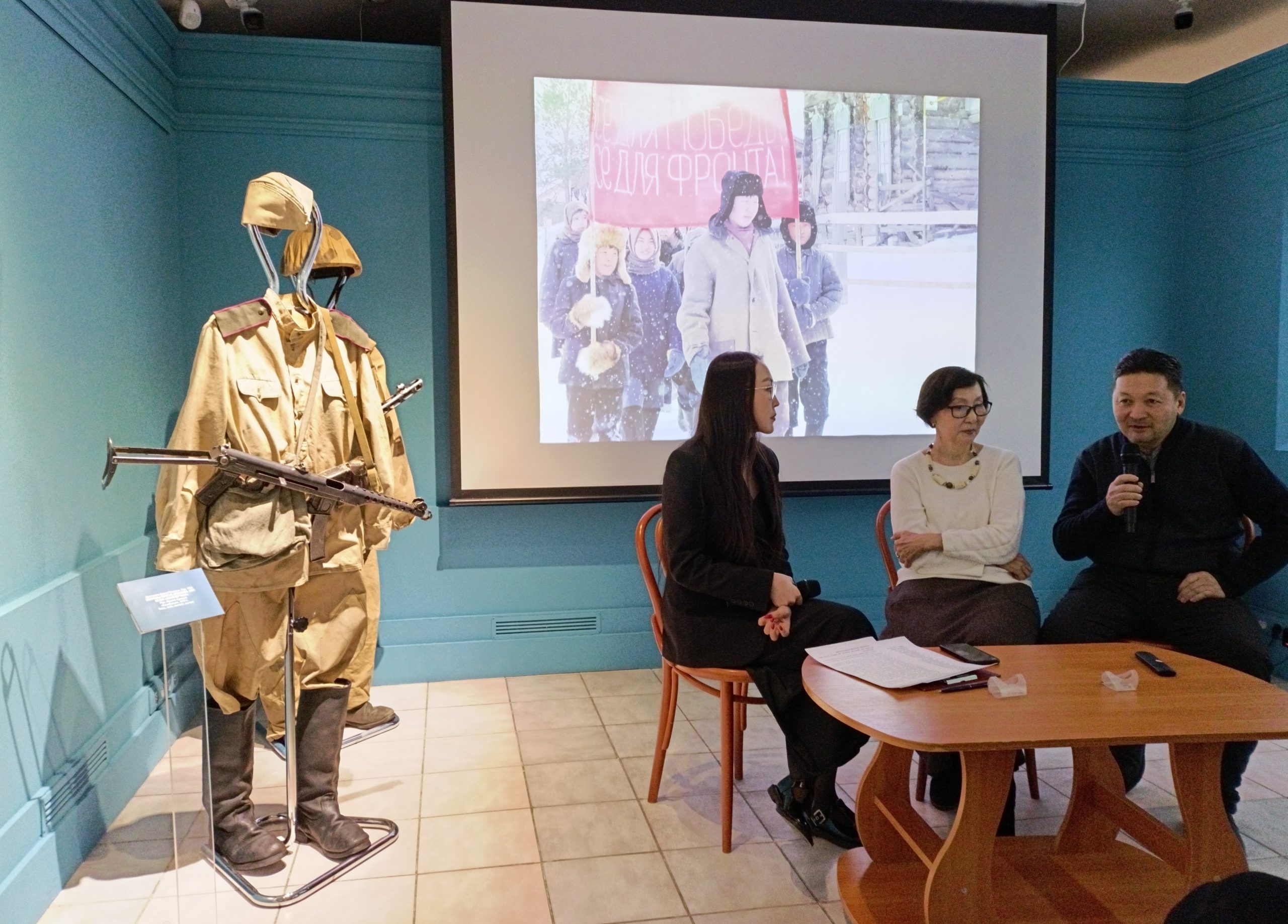 Половина экспозиции посвящена фильму «Тыгын Дархан», равных которому в якутском кино нет и, наверное, уже не будет: более 3,5 тысяч костюмов, более 200 оригинальных декораций, 10 тысяч участников массовых сцен, четыре времени года… Пока звучат эти цифры, глядишь на обоих художников и думаешь: как они выжили?