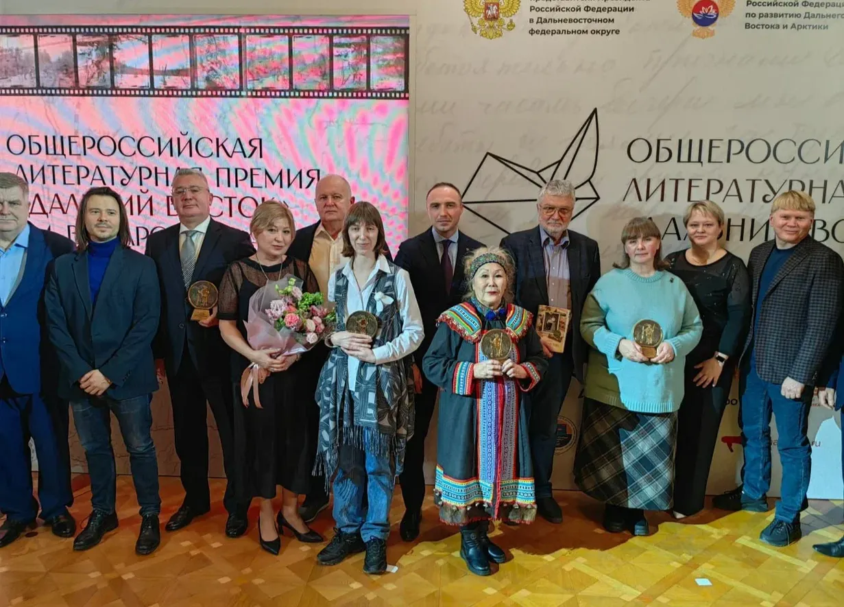Награды писателям вручили заместитель полпреда Президента РФ в ДФО Григорий Куранов, замглавы Минвостокразвития Антон Басанский и председатель жюри премии, писатель Юрий Поляков.