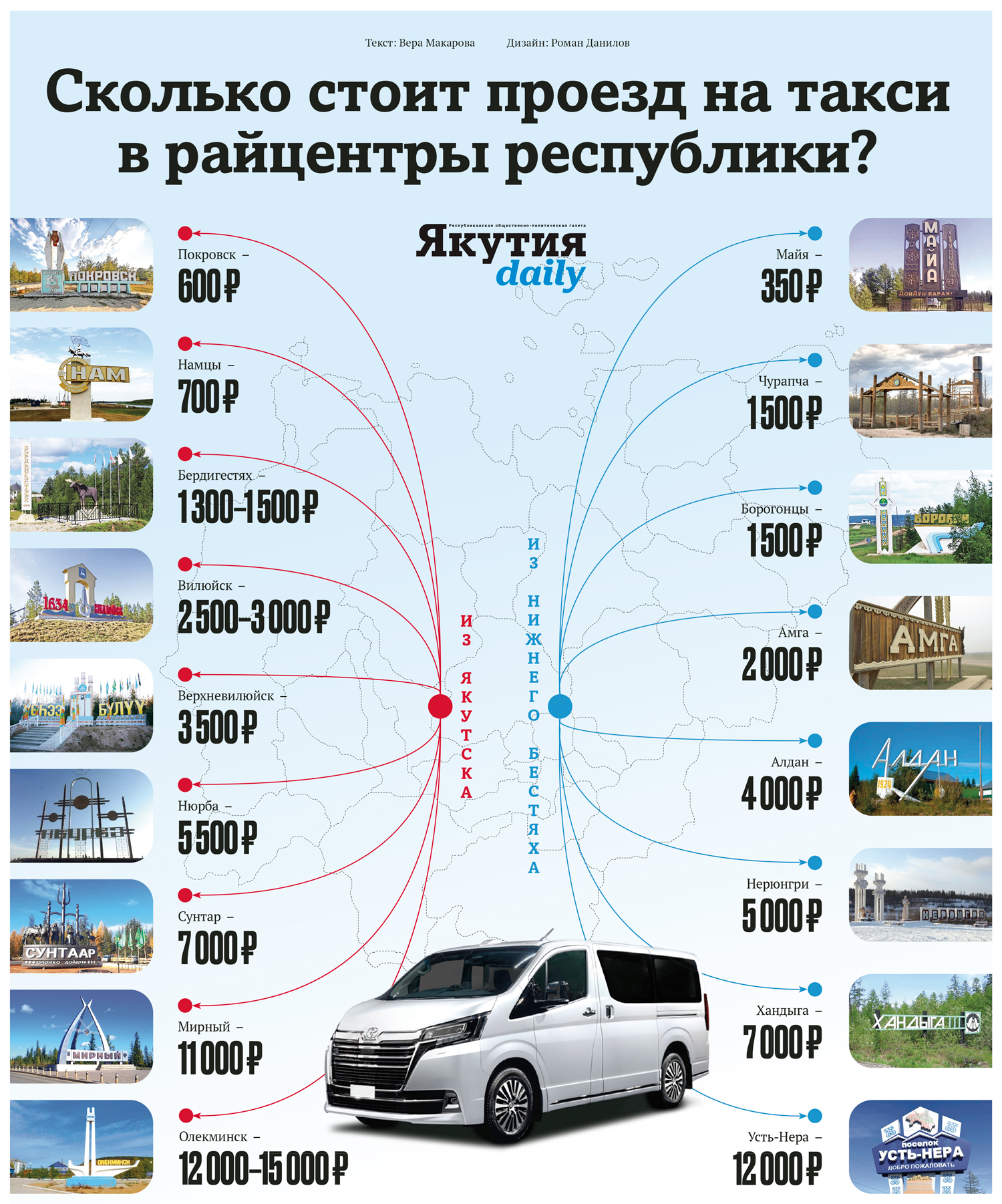 ИНФОГРАФИКА: сколько стоит проезд на такси в районные центры Якутии