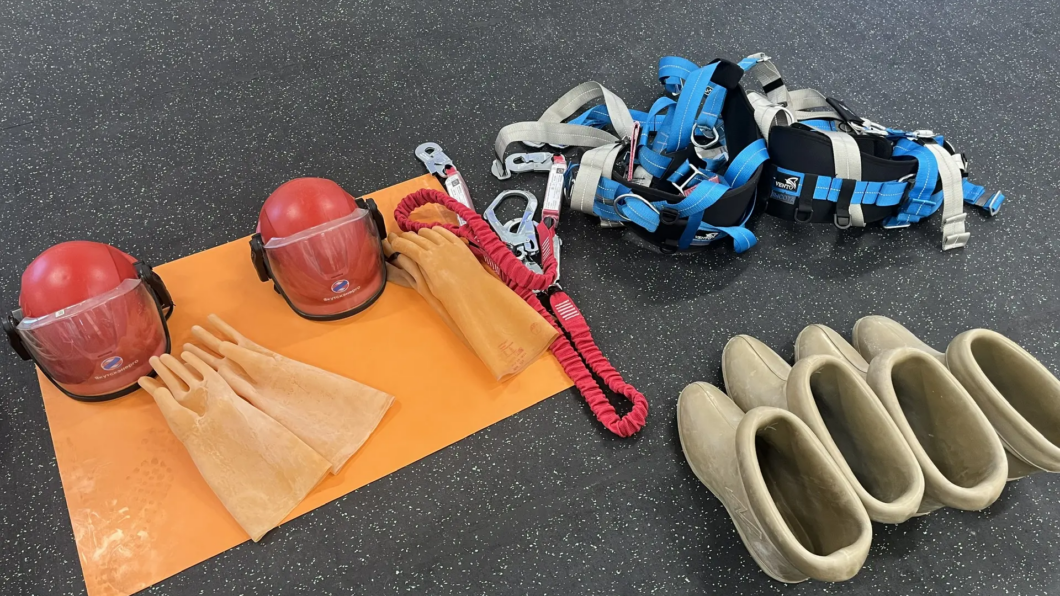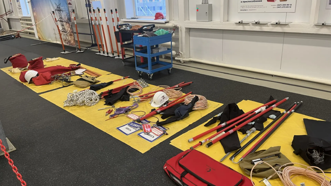 Нас провели по мастерским. Мы посетили высотно-тренировочный полигон, слесарно-механическую, мастерскую сварки и огневых работ, мастерскую дизельного и газотурбинного оборудования, закрытый полигон воздушных линий электропередач, полигон возобновляемых источников энергии и полигон подстанционного оборудования. На крыше, как нам рассказали, установлены солнечные панели.