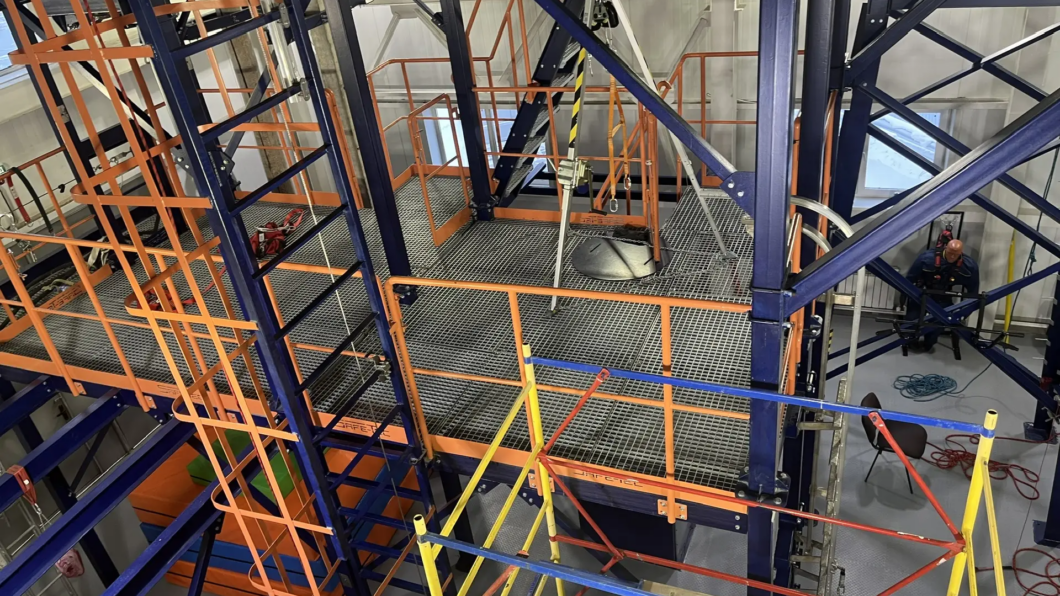 После чего всем выдали средства индивидуальной защиты – страховочную привязь, каски и перчатки. Нацепив все необходимое, мы – кто в унтах, кто в легком платье, – храбро потопали за инструктором наверх. С каждым пролетом пол отдалялся все больше и больше, а подстеленный для страховки мат внизу казался все меньше и меньше.