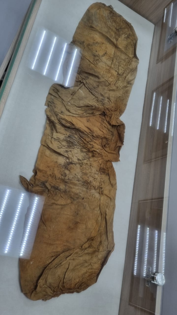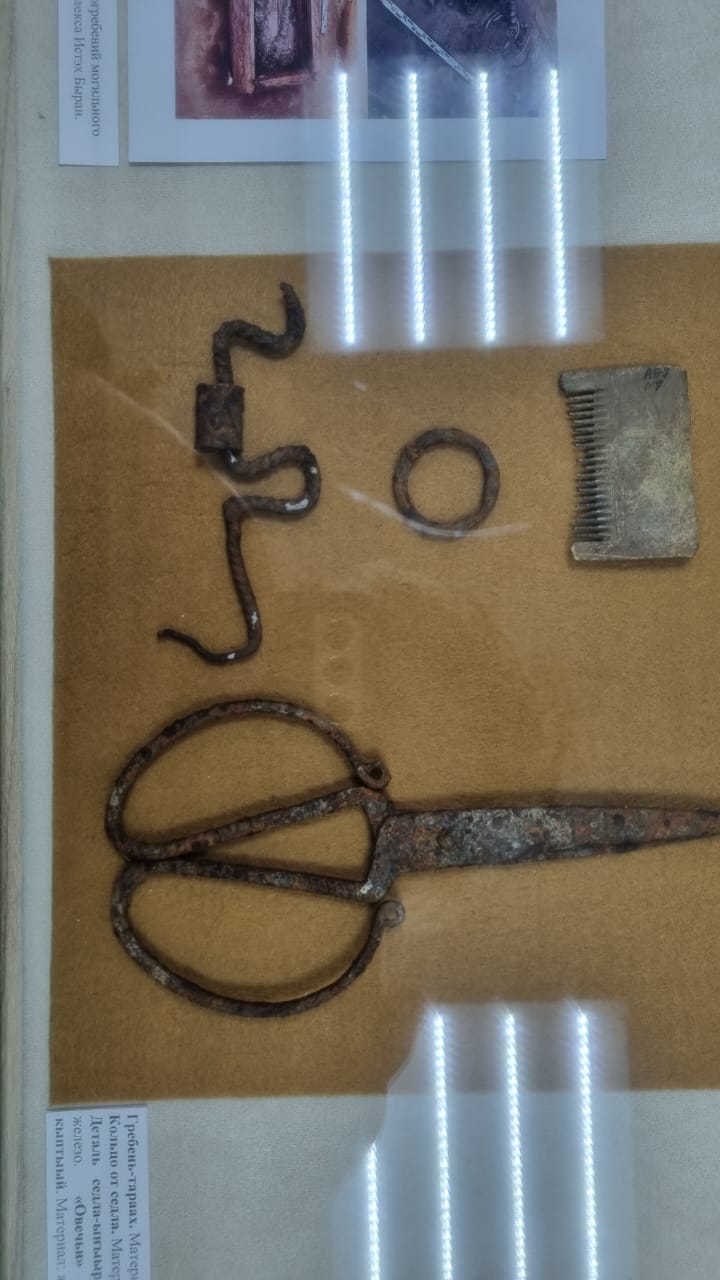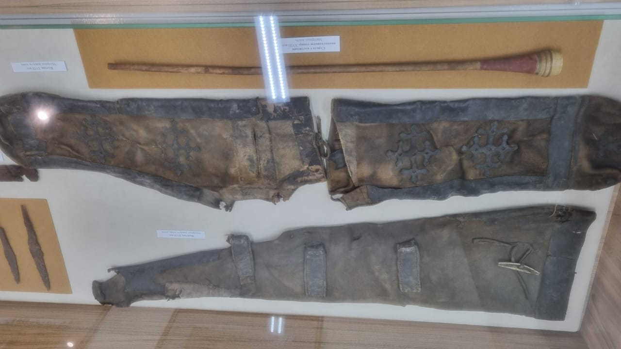 На выставке, которая будет работать до 14 ноября, представлены артефакты из Музея имени Емельяна Ярославского, Института гуманитарных исследований и проблем коренных народов Севера и самого Музея археологии и этнографии. Гаврил Ксенофонтов раскопал могилу Мазары Бозекова в 1933 году и нашёл уникальные вещи. Его одежду, оружие. Например, в колчане Мазары было 18 стрел, тогда как обычно их бывает семь. В колчане есть и прорезь для батыйа. Тогда скелет и череп Бозекова увезли неведомо куда. Может в Иркутск, в университет, где тогда работал Ксенофонтов.