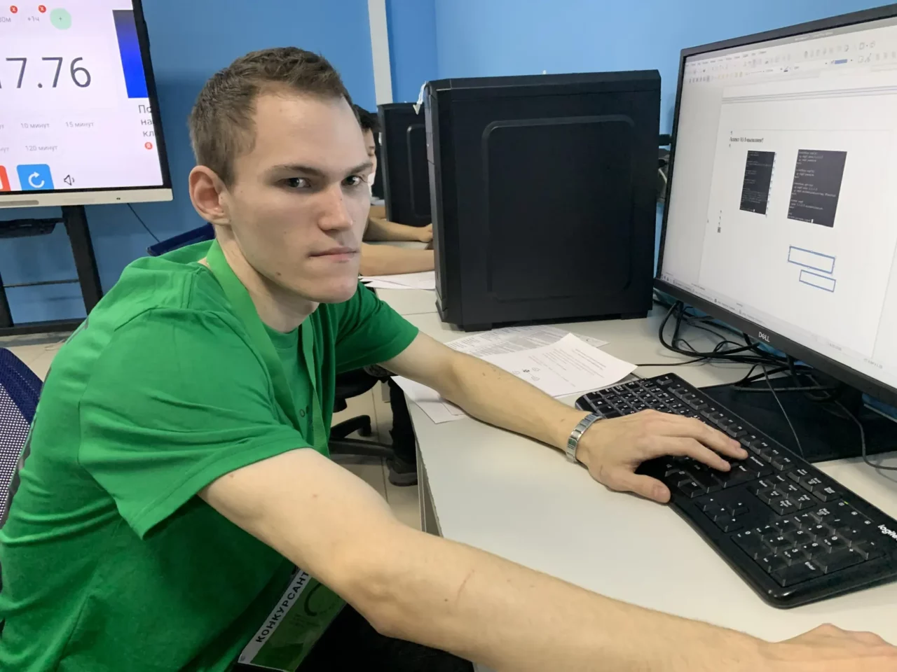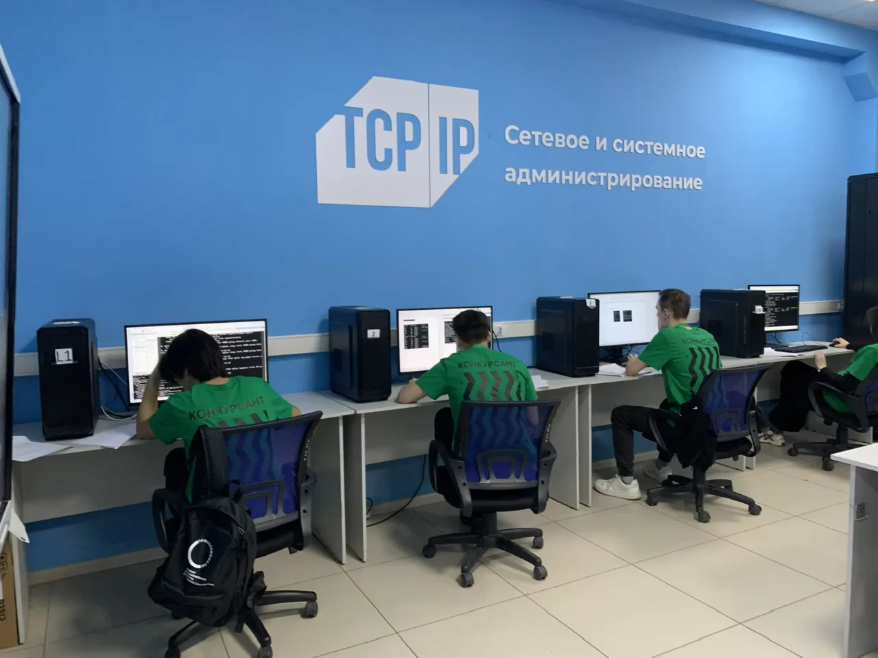 Также мы заглянули в аудиторию, где шли соревнования по компетенции «Сетевое и системное администрирование». Главный эксперт Конон Колодезников отмечает, что участники выполняют задания по модулю «Аудит»: как системные администраторы, они должны показать свои профессиональные качества. Будут модули «Настройка технических средств сетевой инфраструктуры», «Киберинфраструктура», связанная с облачными технологиями.