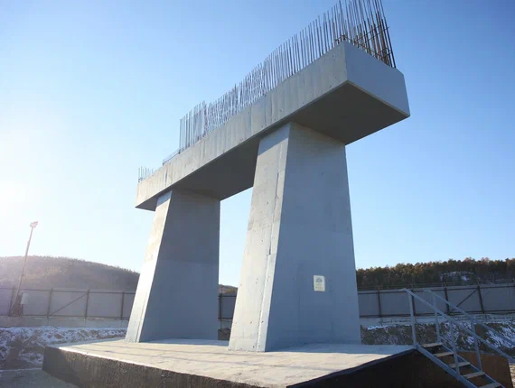 Каждую опору ставят после долгих проверок и испытаний на давление грунтов. На испытательный стенд, который прежде устанавливается вместо опоры, подаётся давление на 1 тысячу 200 тонн и определяется осадка опоры. Если осадка менее 4 см, есть несущая способность! На построенной опоре осадка была 1,6 миллиметра.