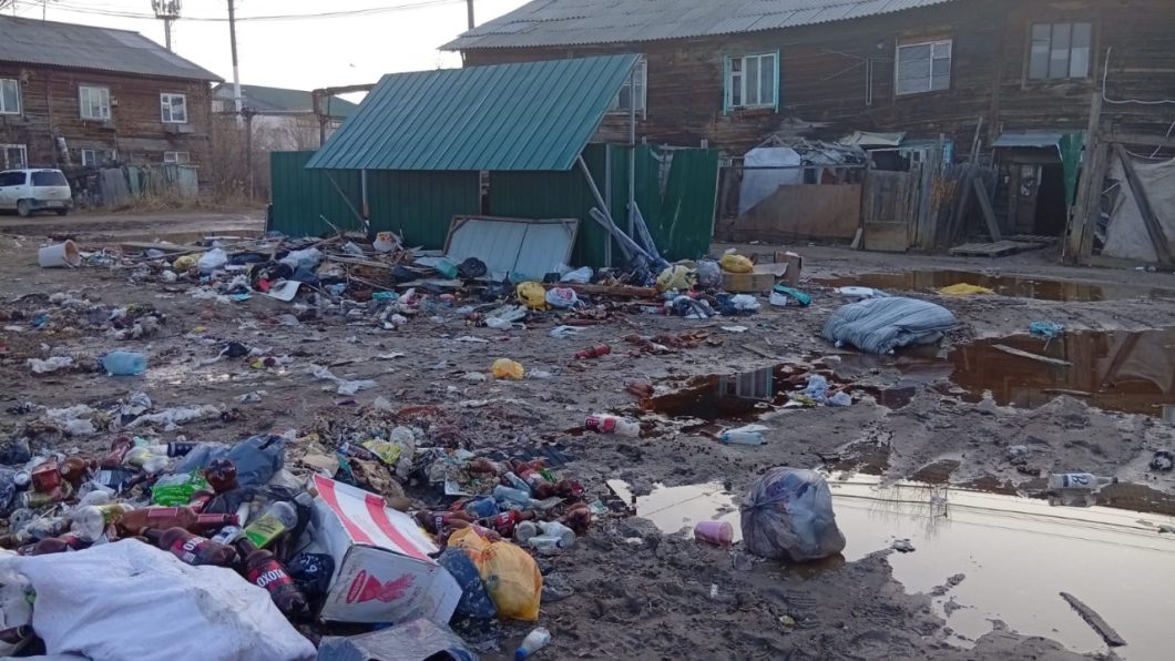 Сейчас такого не увидишь, но всё равно грязно, земля буквально чёрно-зелёная от того, что пропитана нечистотами ведёрно-выносной системы. А сам мусор везде – в оградах, переулках, кучками в пакетах, в виде полуразобранных машин, холодильников и даже диванов.
