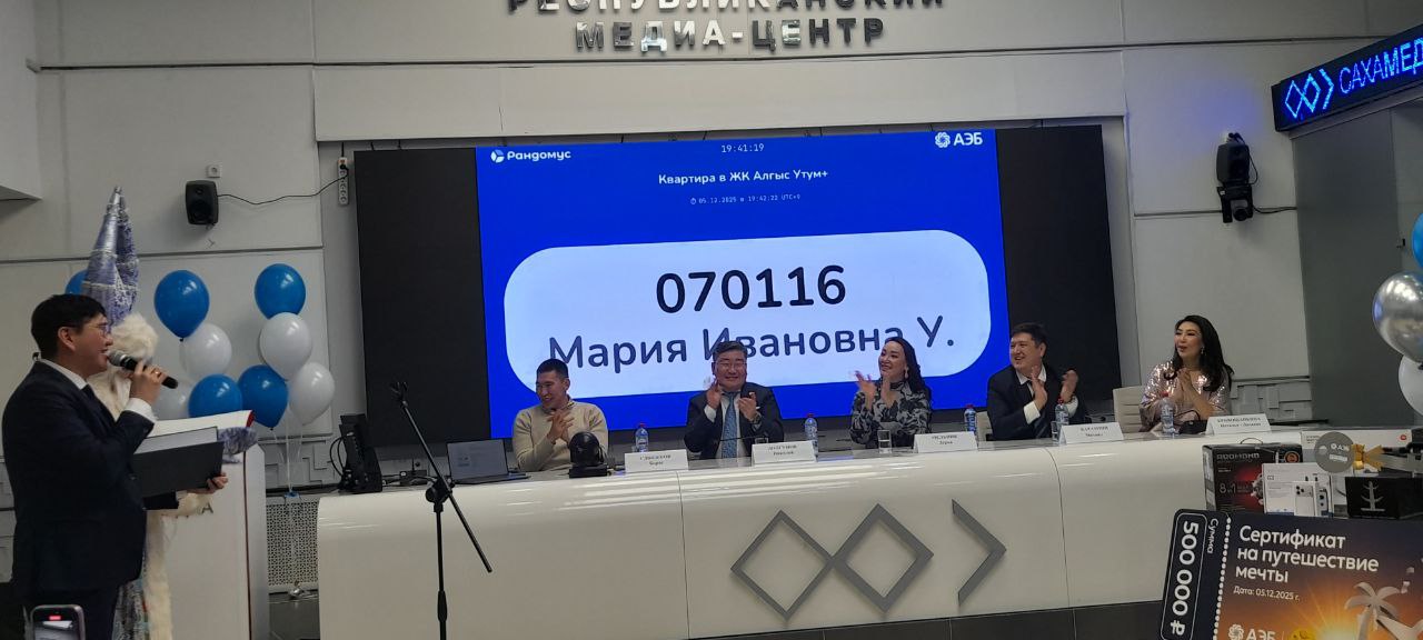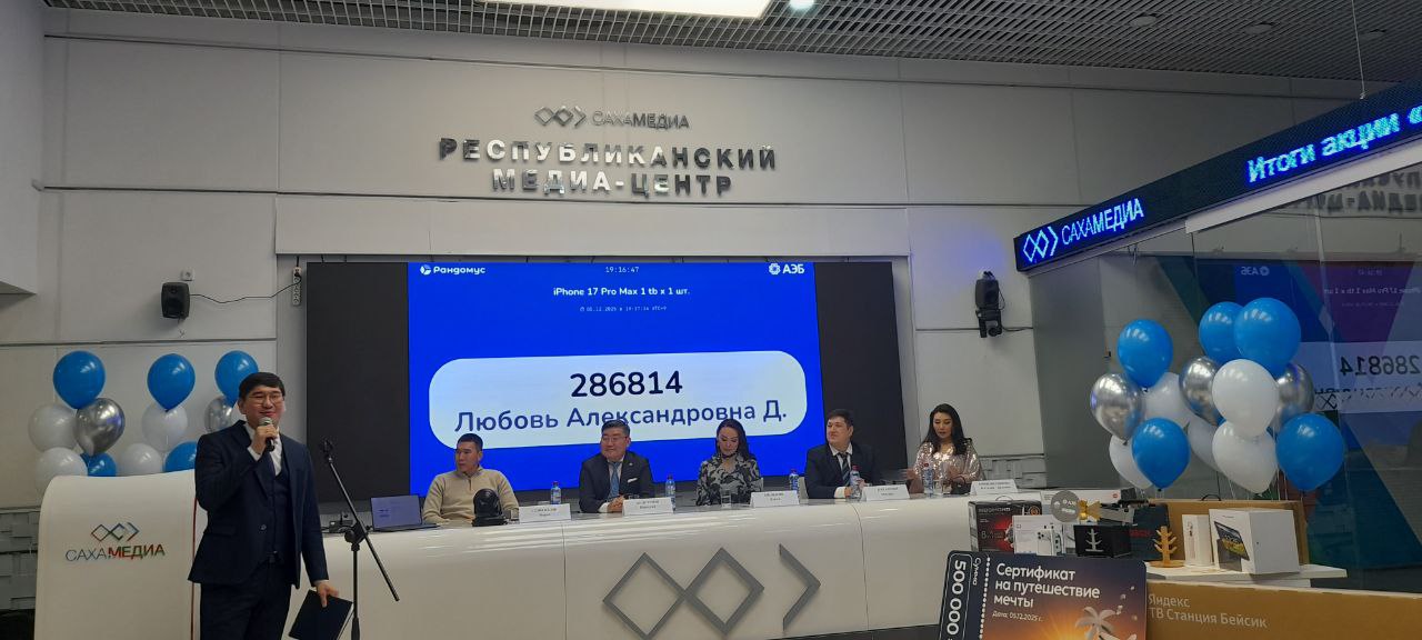 В пятницу, 5 декабря, в Медиацентре «Сахамедиа» «Алмазэргиэнбанк» провел грандиозный розыгрыш призов. Счастливчики, которым повезло в этот вечер, стали обладателями квартиры стоимостью семь миллионов рублей в новом ЖК «Алгыс», сертификата на турпутевку номиналом 500 тысяч рублей и смартфона «Apple iPhone 17 Pro Max» стоимостью 236 тысяч рублей.
