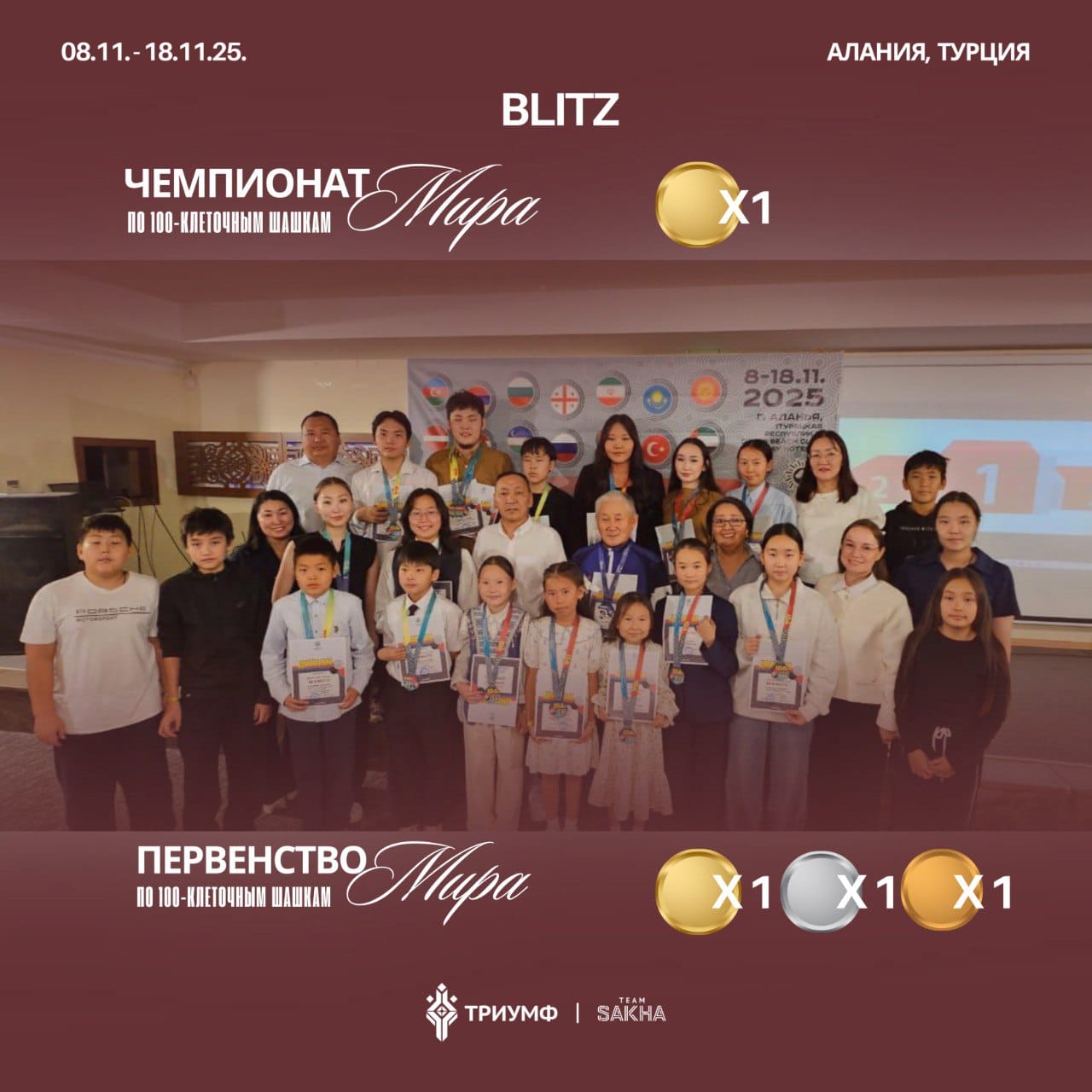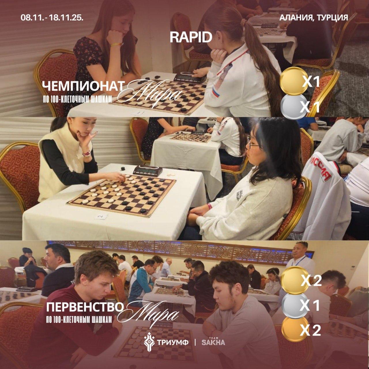 В Турции проходят чемпионат и первенство мира по стоклеточным шашкам. Спортсмены из Якутии завоевали 12 медалей, включая пять золотых.