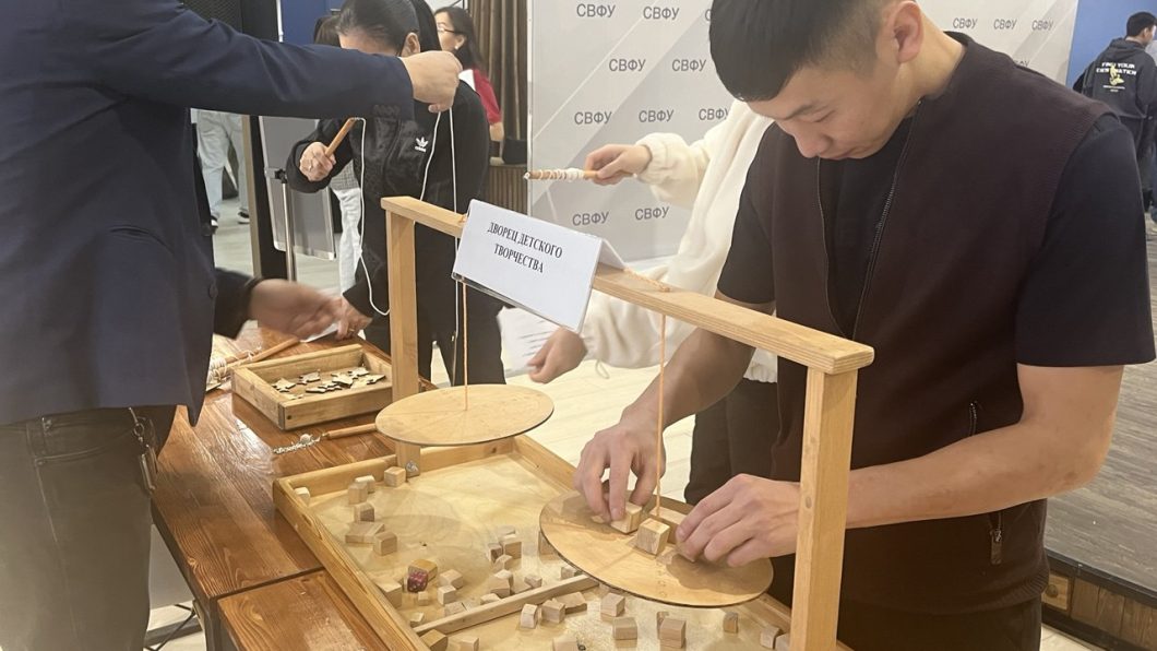 Вторая станция — «Этносила». Здесь гостей ждут комплекс упражнений с инструктором, настольные игры хабылык и хаамыска, а также другие игры на ловкость и смекалку.