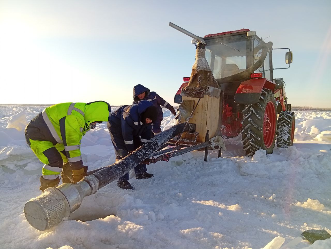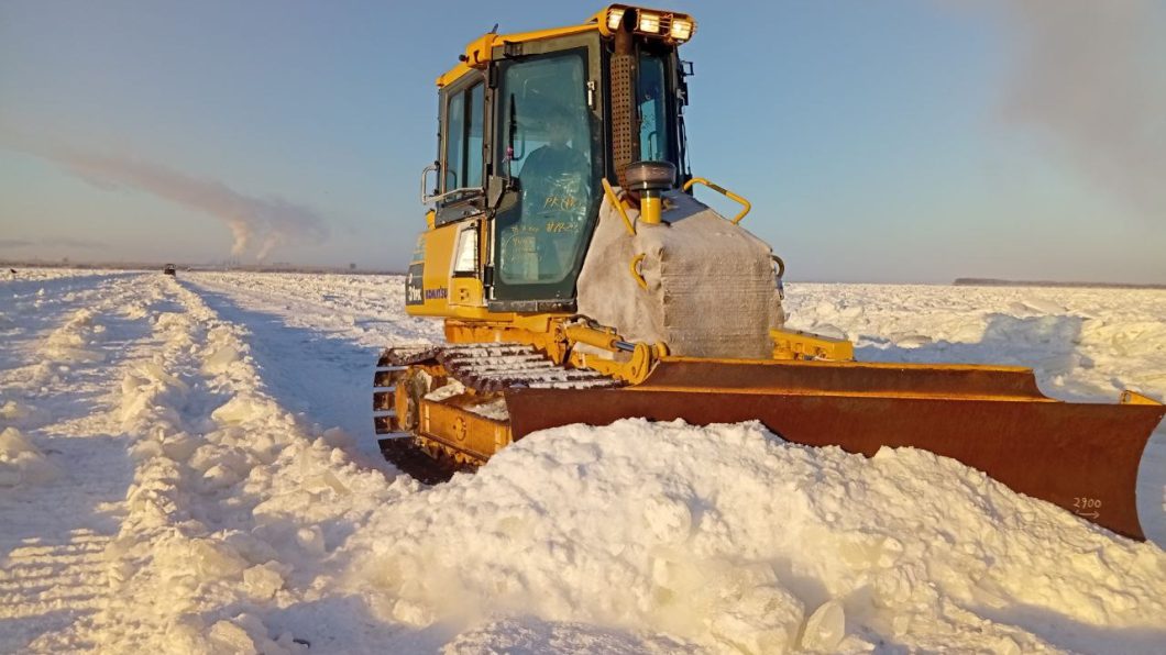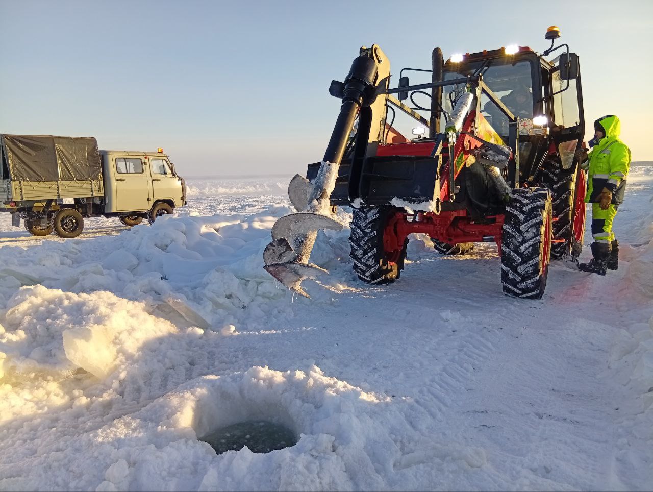 Пока на льду работает сравнительно лёгкая техника. Это небольшие гусеничные и колёсные трактора с навесным оборудованием. Для сведения, для техники весом не более семи тонн требуется лёд толщиной не менее 30 см. Четырёхтонным колёсным тракторам — 25 см. Когда лёд станет толще, на него выйдут куда более мощные и производительные автомобили.