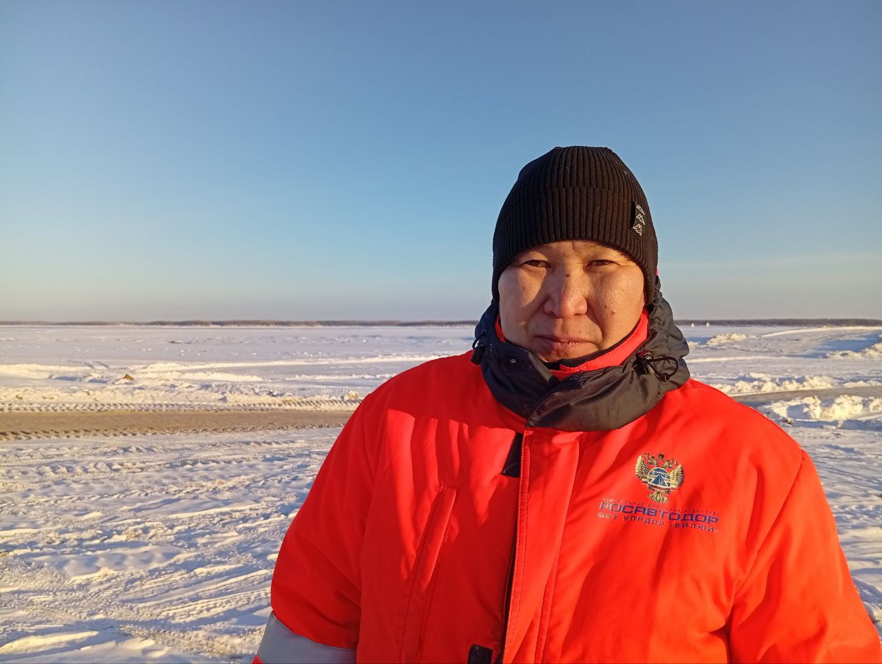 На ледовую переправу мы выехали с заместителем начальника отдела содержания автомобильных дорог ФКУ Упрдор «Вилюй» Гаврилом Фёдоровым, он рассказывает о рабочих моментах.