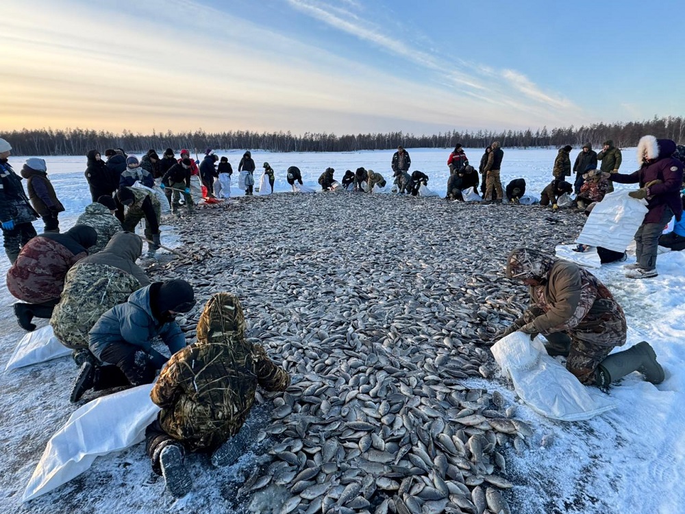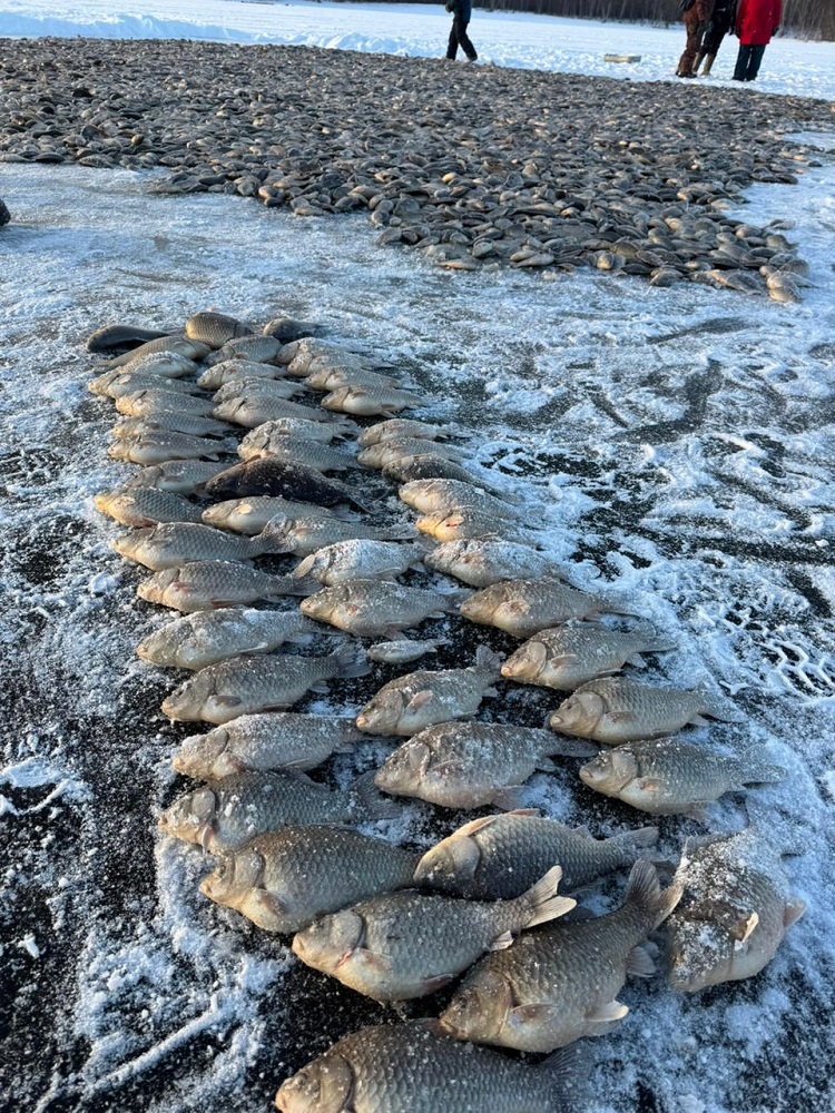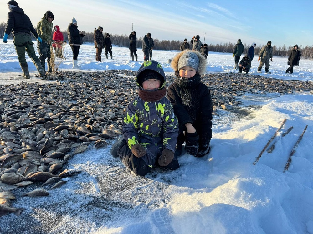 На мунха в Эмиссах 115 школьников выловили более 100 кулей карасей