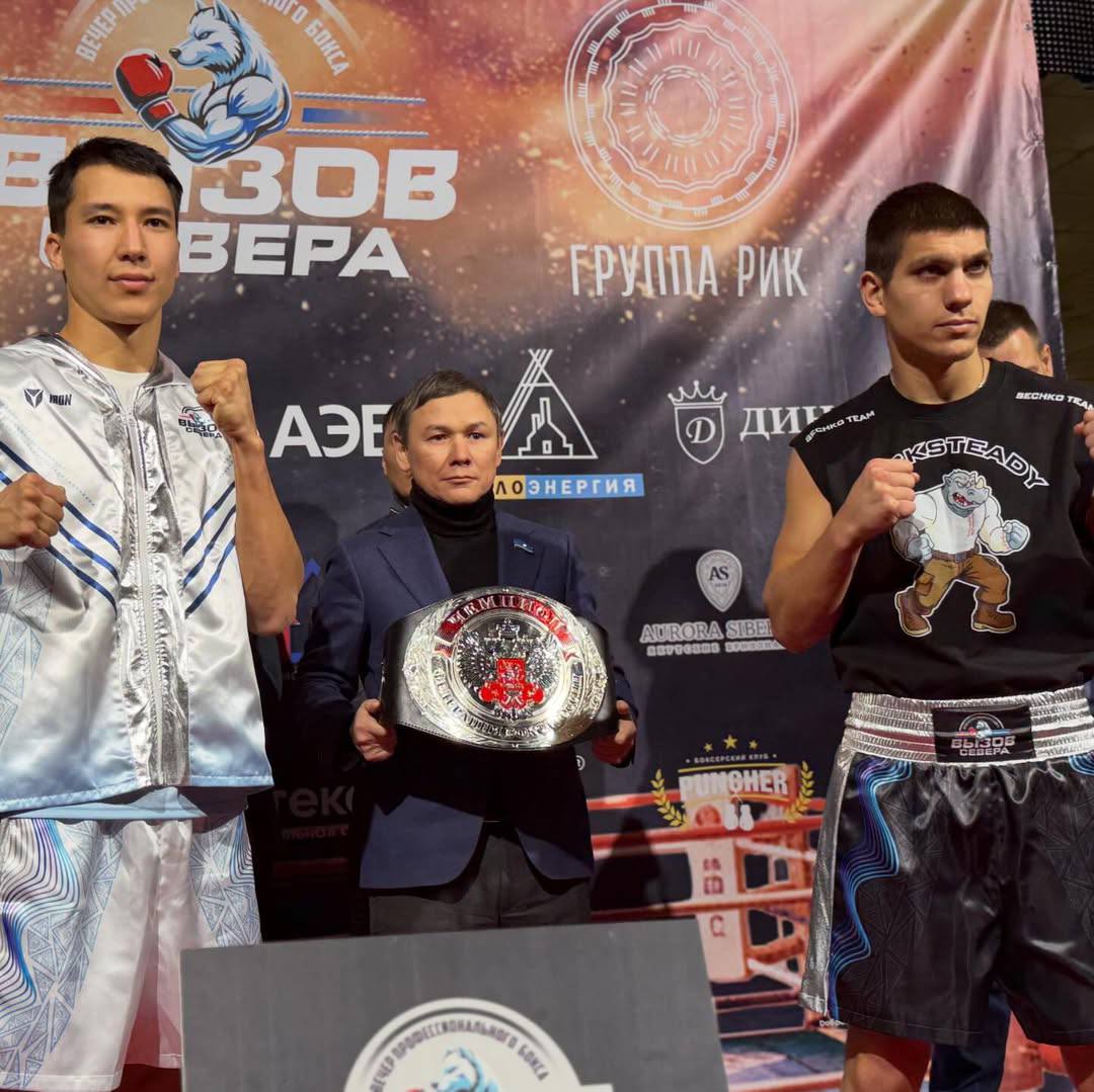 Назар Андреев (Марха) и Александр Сечко (Челябинск). С поясом чемпиона России среди профи Георгий Балакшин.