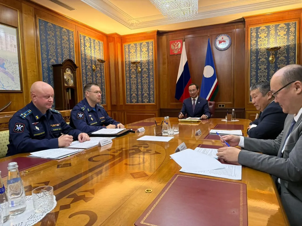Глава Якутии Айсен Николаев провёл рабочую встречу с заместителем начальника Службы специального контроля Министерства обороны Российской Федерации – начальником тыла, полковником Максимом Ковалевым и командиром войсковой части, полковником Владимиром Пашковым. Основной темой обсуждения стало развитие инфраструктура военного городка, расположенного в посёлке Пеледуй Ленского района, сообщила пресс-служба АГиП РС (Я).