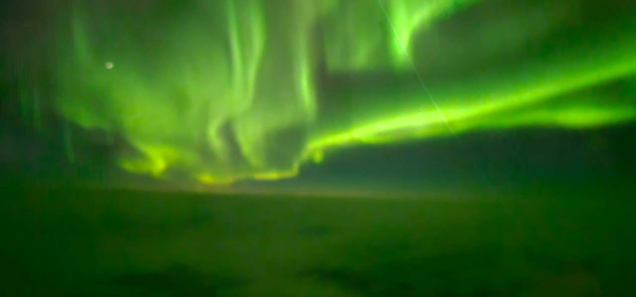 «Изумрудные ленты зажигались и разливались неспешными реками», — пишут в телеграм-канале авиаперевозчика.
