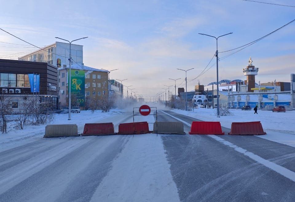 Проезд по улице Ойунского в Якутске закрыт от улицы Дежнева до Финансово-экономического колледжа