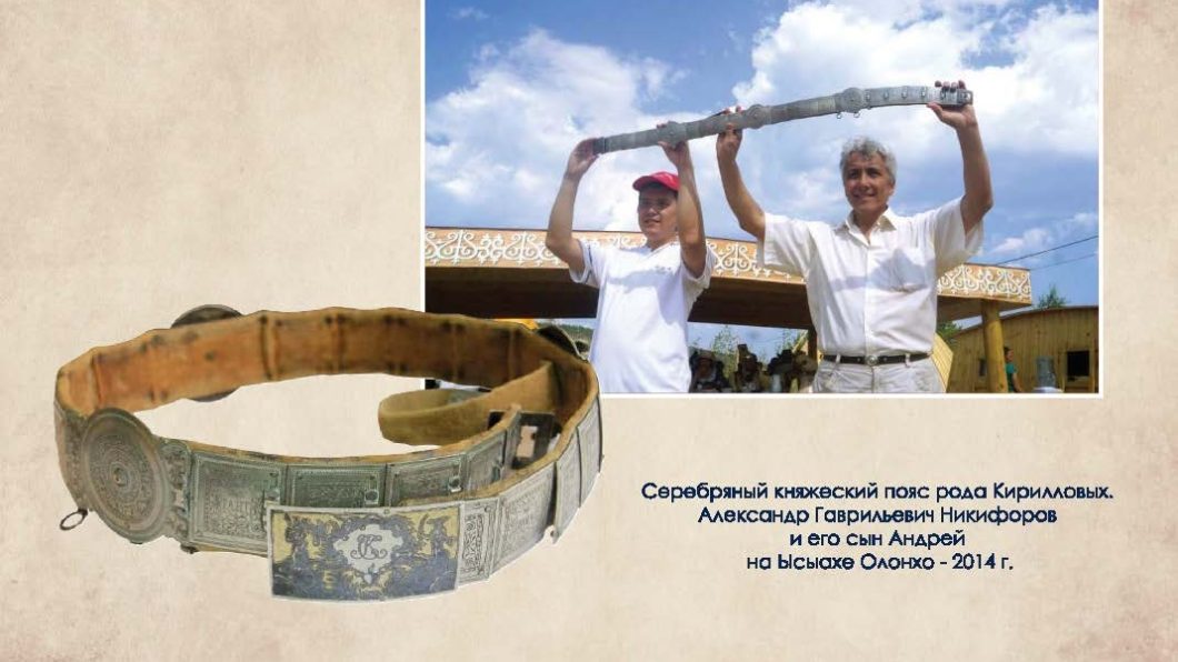 Евгений в прошлом году сменил фамилию Никифоров на Кириллов и дал её сыну Мише. У семьи много планов. Восстановить усадьбу у Кириллова Быраана полностью, чтобы там стояли, как в старину, двухэтажный дом, балаган, ураса. Не для коммерции, а ради восстановления исторического облика, чтобы изучать якутские обряды, организовывать экскурсии для молодёжи. То же самое планируют сделать на большом аласе Эрэдьэб с его озёрами. Отсюда ведут своё начало фамилии Гермогеновых, Фёдоровых, Кирилловых. Якутское отделение ВООПИиК, членом которого состоит и Евгений Кириллов, и Министерство культуры Якутии только «за». Столько лет нас лишали истории, и её обязательно надо восстанавливать, чтобы не были мы Иванами, не помнящими родства.