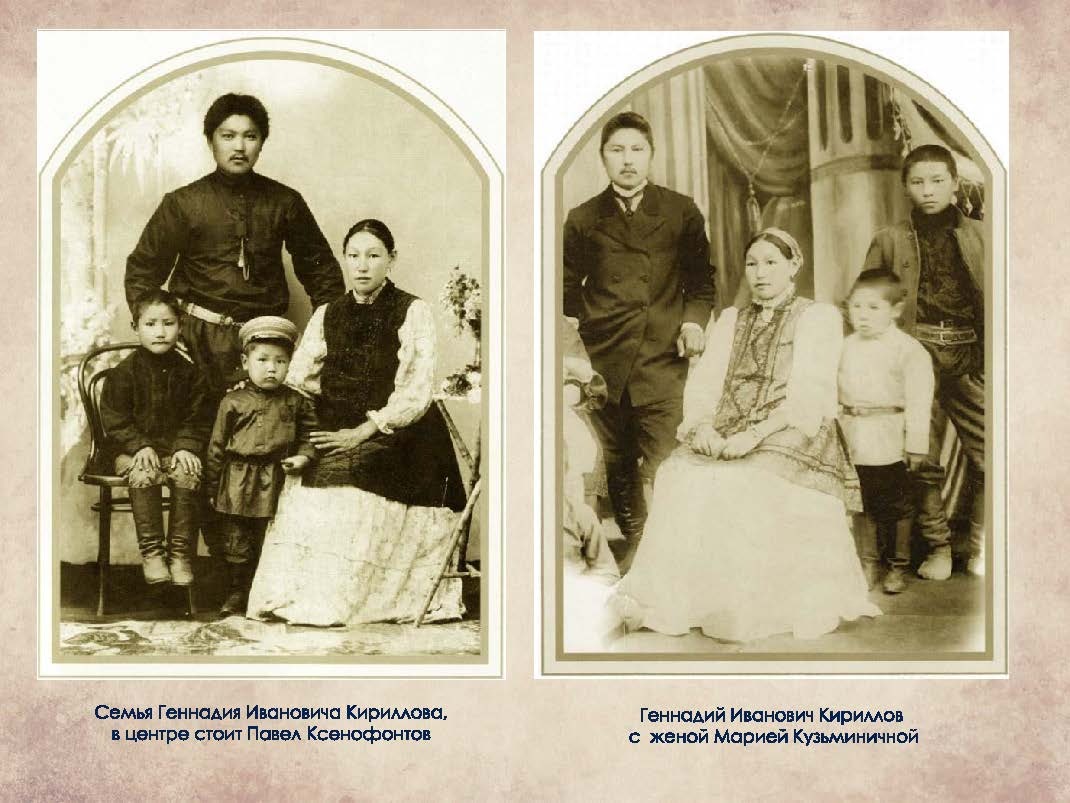 У его отца Ивана Максимовича была сестра Екатерина Максимовна Кириллова, которая вышла замуж за голову улуса Василия Ксенофонтова и родила братьев Гаврила и Павла Ксенофонтовых, чьи имена теперь знает каждый саха.