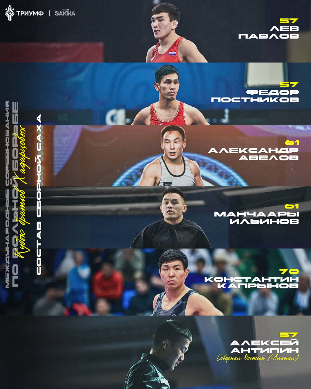 Сегодня в 17 часов по якутскому времени начнутся схватки. В весе до 57 кг Лев Павлов встретится с Хабибом Мехтихановым из Дагестана. Фёдор Постников поборется с Мохаммадом Ализаде из Азербайджана. Алексей Антипин из Северной Осетии будет бороться с Баиром Шагдуровым из Бурятии.