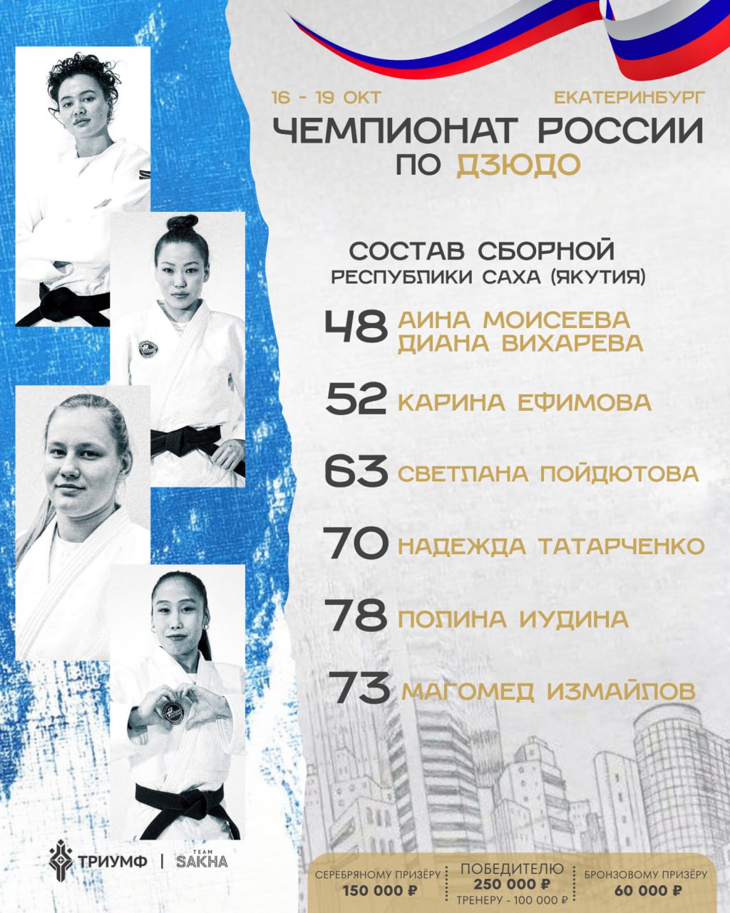 16 октября в Екатеринбурге во Дворце дзюдо стартует чемпионат России по дзюдо. В нём примут участие семь воспитанников якутской школы дзюдо.