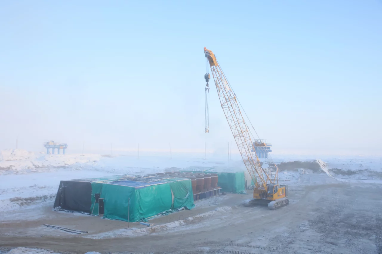 Для нужд стройки запущены бетонные заводы в арктическом исполнении, позволяющие производить и поставлять бетон в любое время года. Оборудованы цех по изготовлению арматурных каркасов, два тёплых гаража для техники и два тёплых склада инертных материалов. Завершается монтаж ещё двух складов для хранения строительных материалов. В летний период на объекте было задействовано порядка 300 человек и 95 единиц техники. В настоящее время, с учётом сезонной корректировки, на всех площадках работают 180 специалистов и 20 единиц техники.