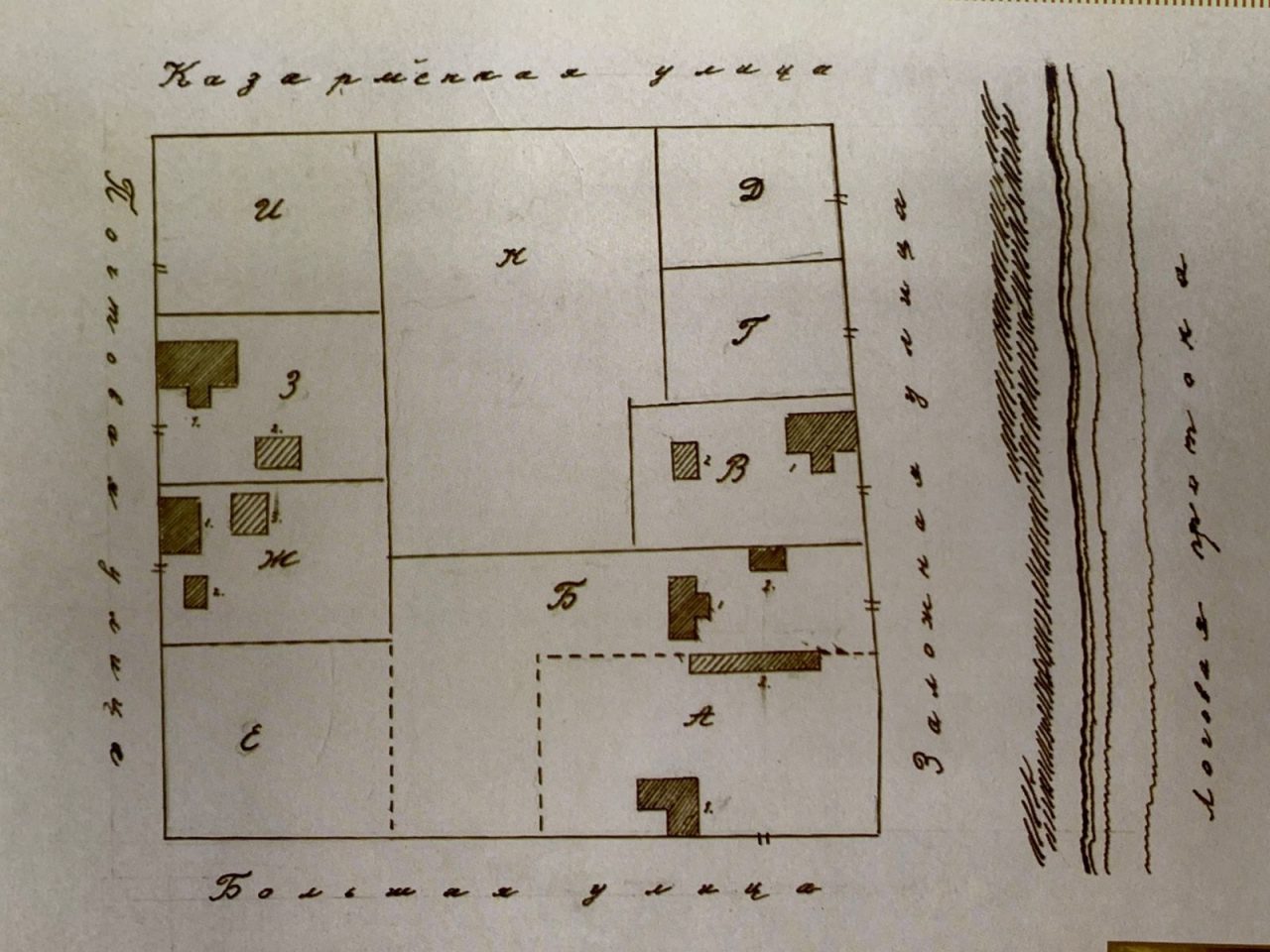 Но, оказывается, участок не принадлежал Проневичу: в сноске говорится, что двор и дом принадлежали притчу Свято-Троицкого кафедрального собора (притч – это название группы лиц, служащих при каком-либо одном храме). Главный хранитель Музея города Якутска Дмитрий Руфов пояснил, что, по всей видимости, территорией и домом когда-то владел собор, который находился по ту сторону Логовой протоки. А позже, возможно, их или выкупили, или арендовали.