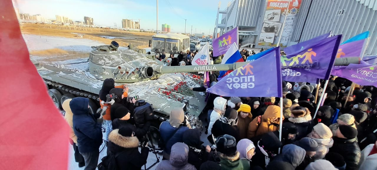 — Трофейная техника доставлена при поддержке командования Восточного военного округа, — рассказал Председатель Правительства РС(Я) Кирилл Бычков. – Практически вся техника была подбита бойцами Группировки войск «Восток», в которой сражается большинство якутян. Считаю, что эта экспозиция поверженной техника противника олицетворяет собой символ победной поступи России в борьбе против неонацизма. В свою очередь танк «Т-72», на броню которого якутяне возлагают живые гвоздики, олицетворяет подвиг героического экипажа танка «Алеша», в состав которого входили Филипп Евсеев и Алексей Неустроев.