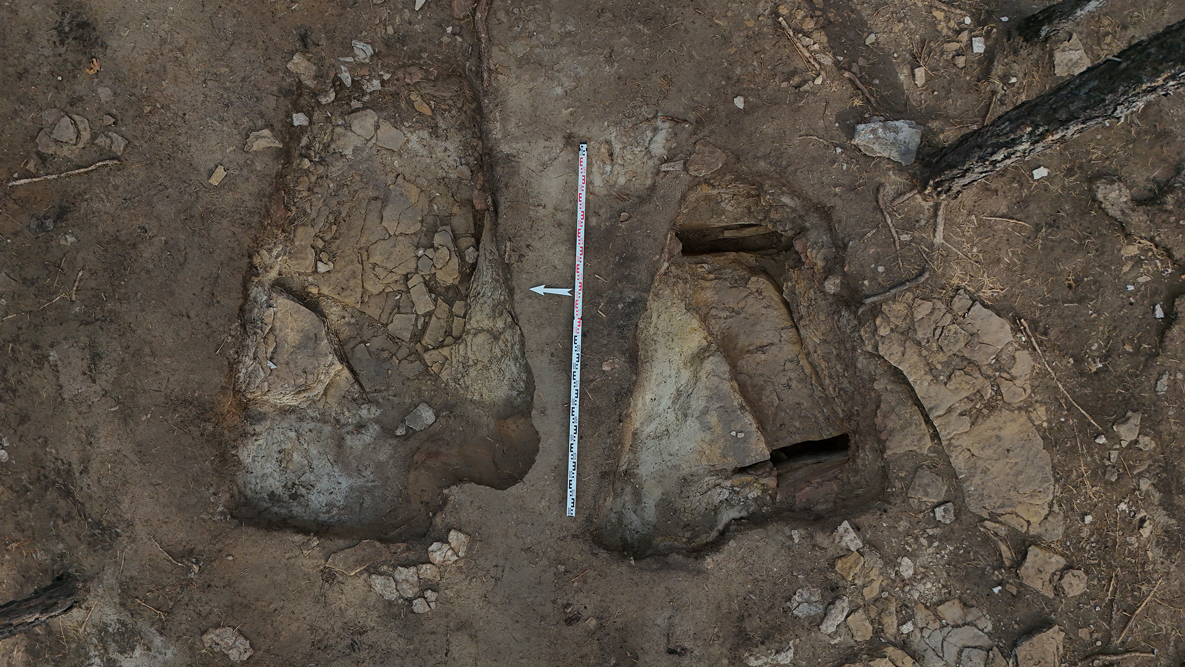 Но за два года работ экспедиция ЯГУ изучила могильник, открытый Федором Васильевым, а также открыла одно из самых значимых погребений могильника на вершине террасы, известное среди археологов как Ат-Дабаан 0. Уже тогда стало понятно, что это высокостатусное погребение. Только представьте: ребенка — не прославленного воина или правителя, а ребенка подняли на такую высоту, выдолбили для него в каменном панцире террасы могилу, сопроводили богатым погребальным инвентарем, где были и украшения, и пальма (старинное колюще-режущее оружие народа саха — ред.), и стрелы, и кремированные останки человека… Мало кто из знатнейших мужчин удостаивался таких пышных похорон, а тут подросток!