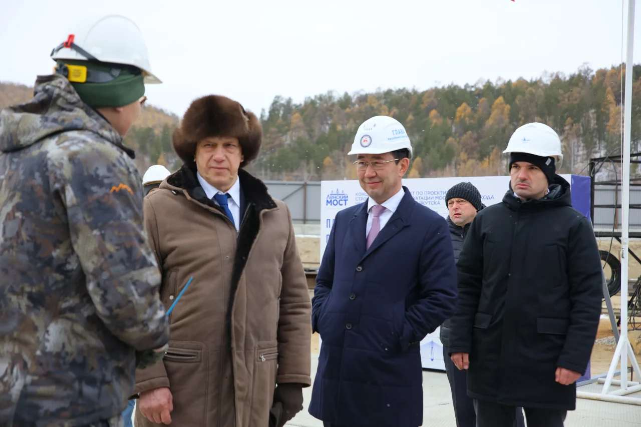 Во время своего рабочего визита в Якутию Заместитель Председателя Правительства Российской Федерации – полномочный представитель Президента РФ в Дальневосточном федеральном округе Юрий Трутнев вместе с Главой Республики Саха (Якутия) Айсеном Николаевым посетили строительную площадку будущего мостового перехода через реку Лену. Об этом сообщила пресс-служба АГиП РС (Я).
