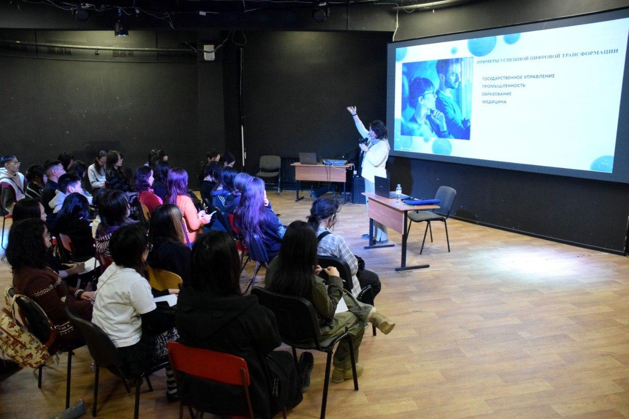 На днях состоялась первая лекция. Спикер, директор АНО РЦРИТ «Куб-А» Саргылана Петрова рассказала студентам о цифровой трансформации и главных IT-трендах.