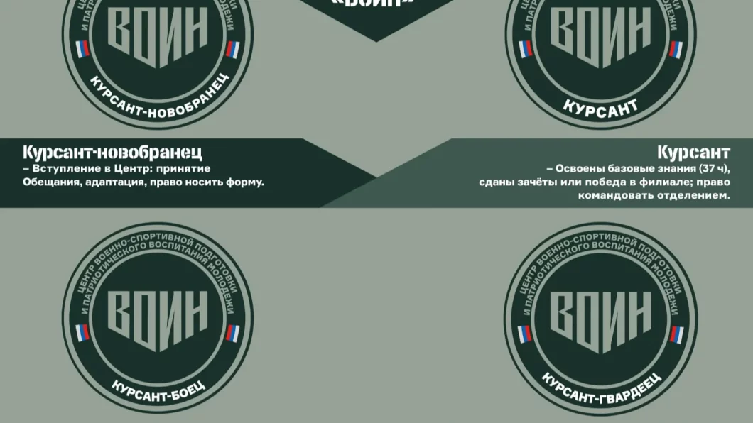 По поручению заместителя Председателя Правительства РФ – полномочного представителя Президента РФ в ДФО, Председателя Наблюдательного совета Центра «ВОИН» Юрия Трутнева в Центре «ВОИН» введен в действие порядок присвоения четырех ступеней отличия курсантам 14-17 лет. Это «Курсант-новобранец», «Курсант», «Курсант-боец» и «Курсант-гвардеец», сообщила пресс-служба АГиП РС (Я).