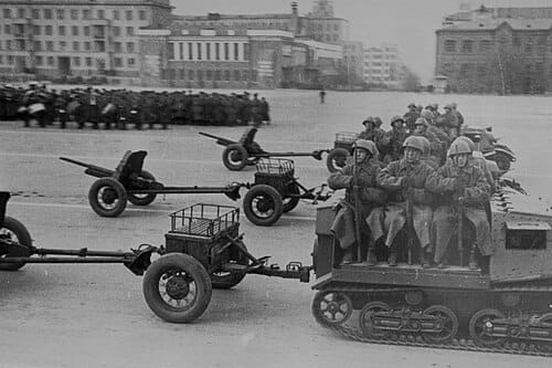 По одной из версий во время парада военную технику снабдили боеприпасами на случай немедленной мобилизации на фронт. Согласно другой в целях безопасности у солдат изъяли патроны, а из танков и орудий убрали снаряды.