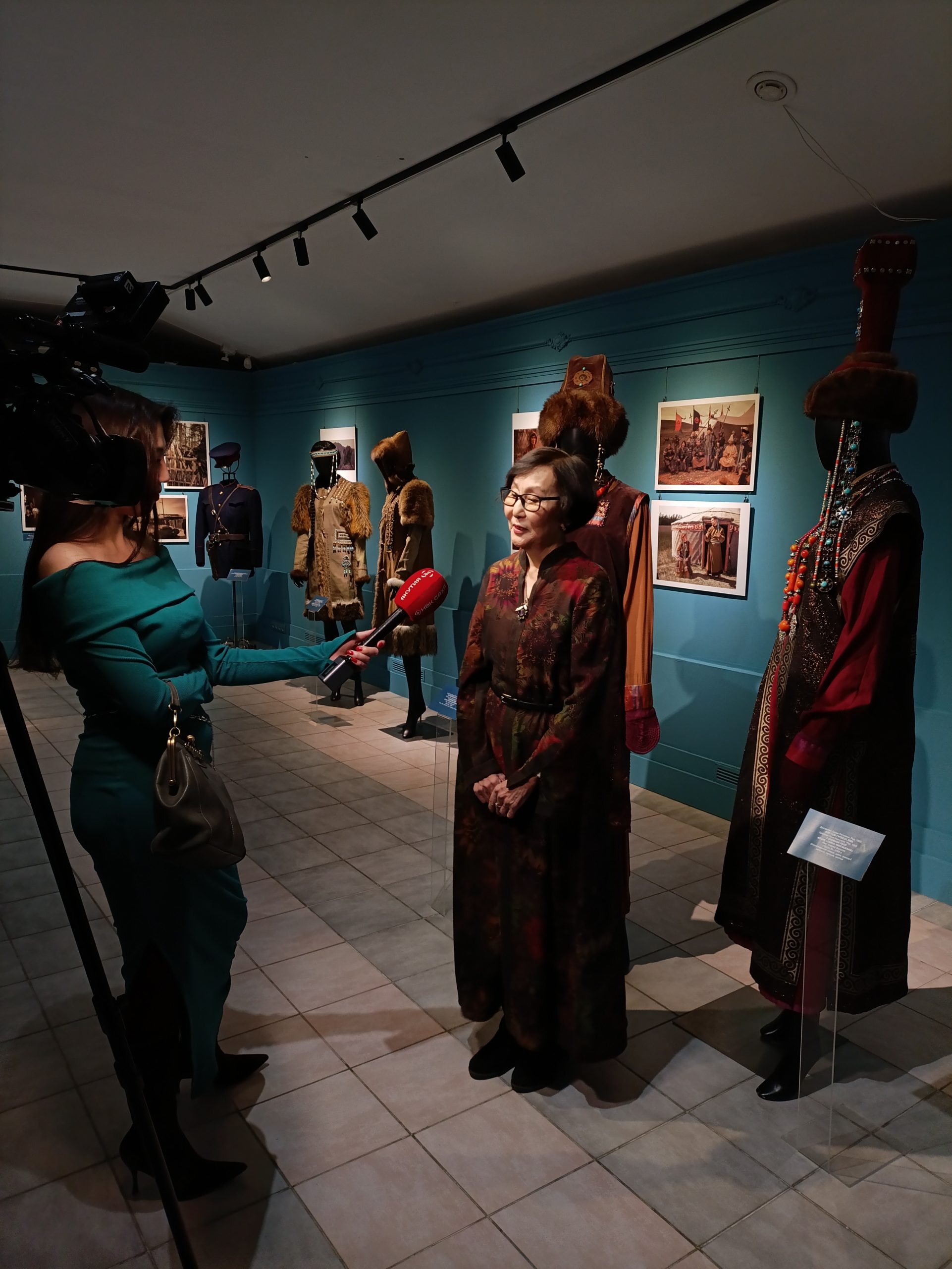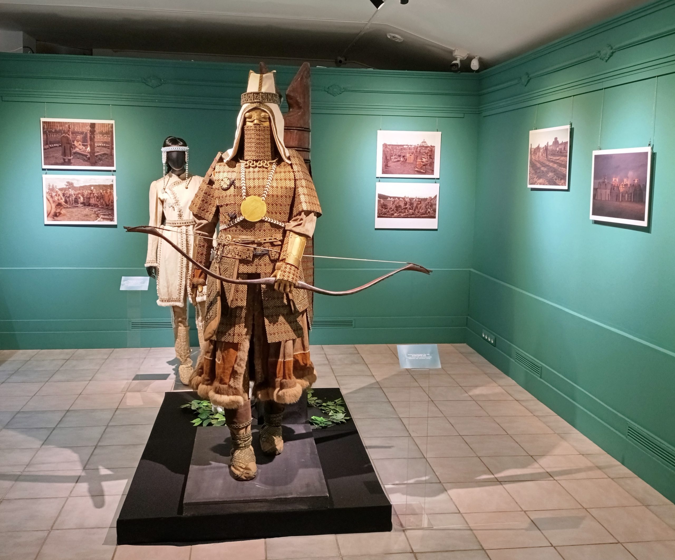 — Творческое содружество двух замечательных художников рождает уникальные кинообразы, — говорит кандидат искусствоведения, заместитель генерального директора Национального художественного музея РС(Я) Юлия Кравцова — куратор выставки «Визуальные метафоры: художник и кино», которая открылась сегодня, 18 декабря. Когда еще можно будет увидеть в одном зале форму лейтенанта Десяткина и снайпера Ардахова, а между ними – богатые наряды матери Чингисхана Ожулун и ханши Гурбесу? Соседний зал «отдан» «Тыгыну Дархану». Впрочем, знакомство с выставкой начинается уже в фойе третьего этажа, где посетителей встречают костюмы героев фильмов «Дивная пора», «Не хороните меня без Ивана» и снова «Тыгына». Но что в фойе, что в обоих залах – особое внимание нужно уделить фотографиям на стенах, сделанным во время съемок самими художниками. Чтобы поймать такие мгновения, недостаточно просто везения – везде чувствуется рука мастера.