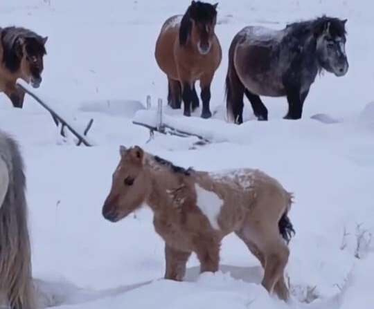 Несмотря на сильные морозы, и мама, и новорожденный чувствуют себя отлично, сообщает Управление ветеринарии РС(Я). Жеребенок уже уверенно стоит на ногах, повсюду следует за кобылой и с аппетитом ест. Расти большим, малыш!