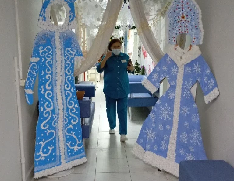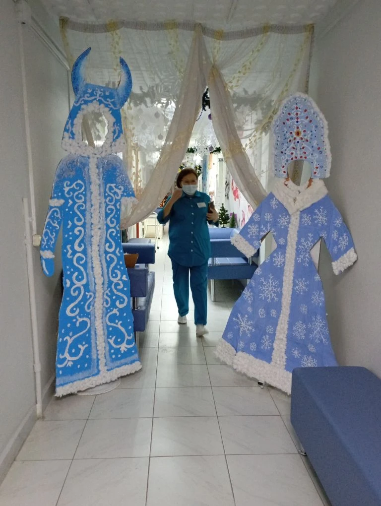 — Прихожу я на днях в свою поликлинику №1 на уколы, а там такую новогоднюю красоту сделали медики, что я была просто в восторге! Смотришь, и сразу новогоднее настроение появляется! Посмотрите, какая красота! — говорит Аксинья Петровна и показывает в телефоне фотографии новогоднего оформления коридоров и фойе поликлиники. – Я, например, была в отделении профилактики и увидела какие же творчески одаренные медики работают в нашей поликлинике: здесь была и фотозона с Дедом Морозом и Снегурочкой, и символ 2026 года Лошадь, стоящая у сэргэ, у них даже горностай под потолком на ветке сидел!