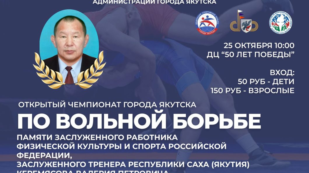 Во Дворце спорта «50 лет Победы» 25 октября состоится открытый чемпионат Якутска по вольной борьбе памяти заслуженного работника физкультуры и спорта России Валерия Петровича Керемясова.