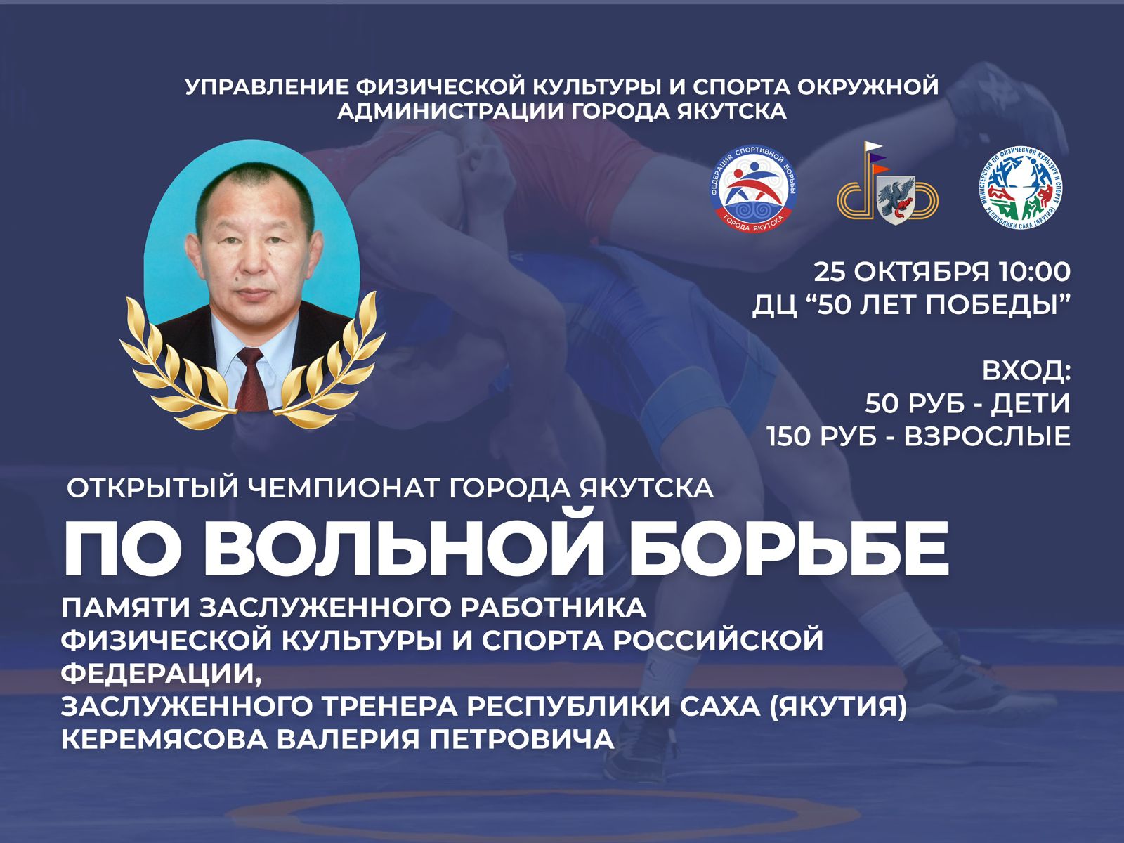 Во Дворце спорта «50 лет Победы» 25 октября состоится открытый чемпионат Якутска по вольной борьбе памяти заслуженного работника физкультуры и спорта России Валерия Петровича Керемясова.