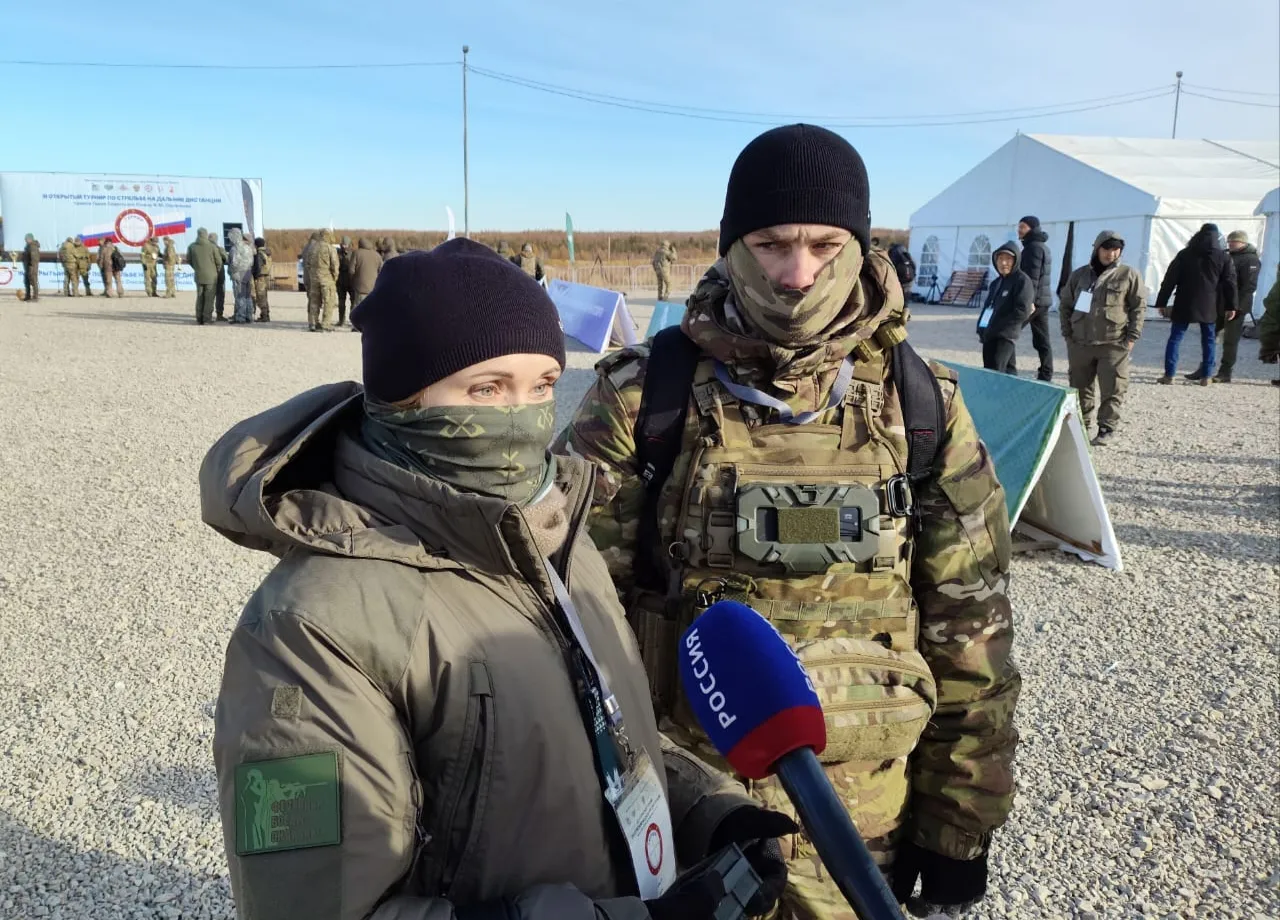«В соревнованиях я участвую второй раз. В прошлом году приезжала как зритель, всё посмотрела, всё понравилось. В этом году решила поучаствовать уже успешно, поскольку мы прошли квалификацию, а её проходит меньше половины пар — по статистике, около 40%. Это очень тяжело. Я занимаюсь высокоточной стрельбой три года, а боевым снайпингом на дальней дистанции — всего полгода, но уже успешно. Сложности, конечно, прежде всего, холод. Хотя на градуснике 0, но очень холодно, приходится греть патроны, потому что если они охлаждаются, падает скорость, и ты уже можешь не войти в цель. Ветры здесь сильные: на тренировке в выходные был ветер до 20 метров в секунду. Это главная сложность», — рассказала представитель Федерации практической стрельбы России.