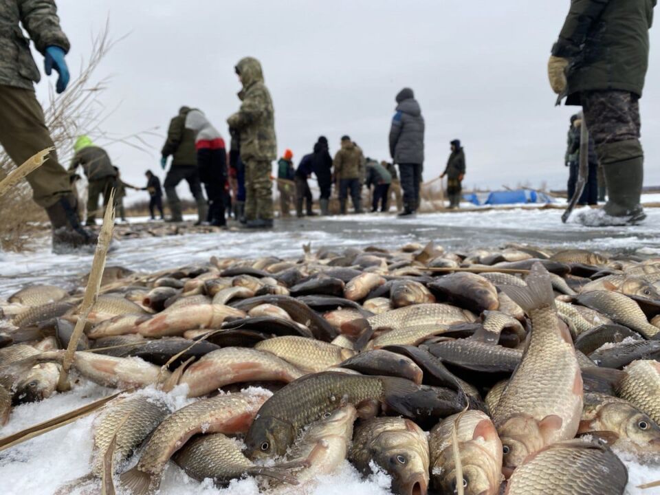 Каждый трудился не зря — на долю одного рыбака пришлось по три большие лопаты карася, откормленного за лето на сапропели.