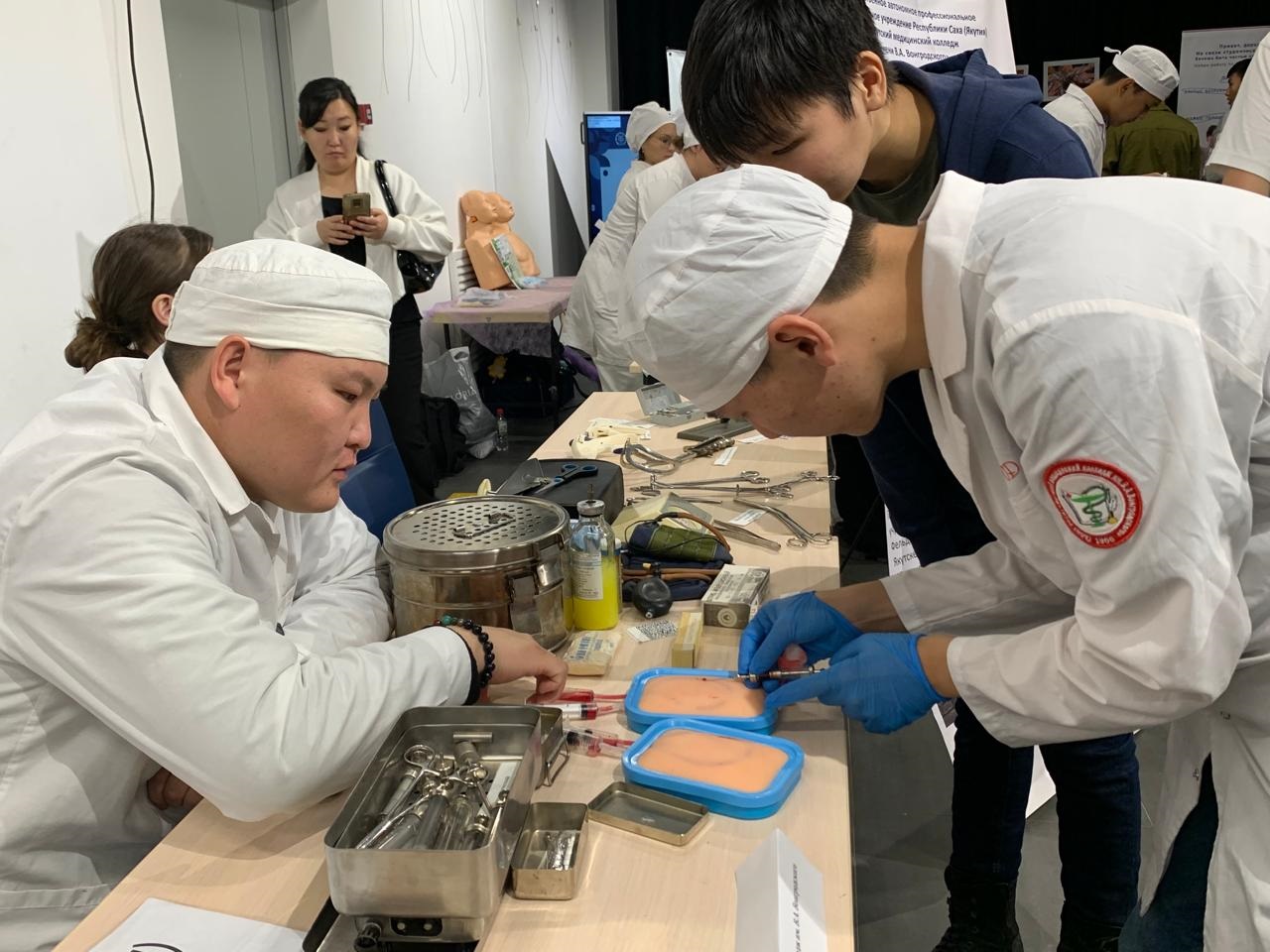 Конечно, интересными были медицинские мастер-классы. К примеру, студент 4 курса Якутского медицинского колледжа Дмитрий Данилов, который учится по специальности «Лечебное дело», проводил мастер-класс по сердечно-легочной реанимации. Кстати, оказывал Дмитрий экстренную помощь предполагаемому «больному» — манекену весьма профессионально.